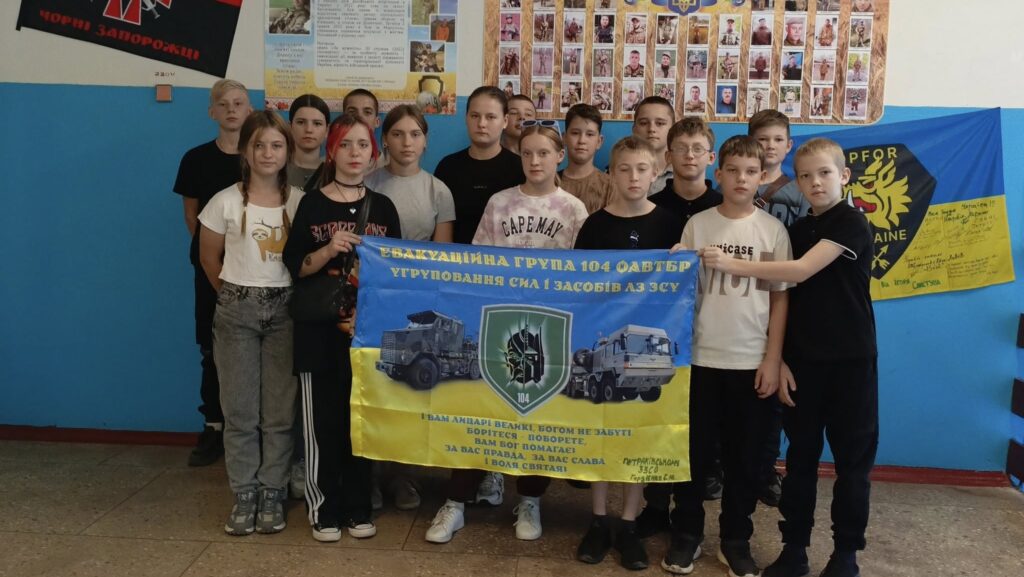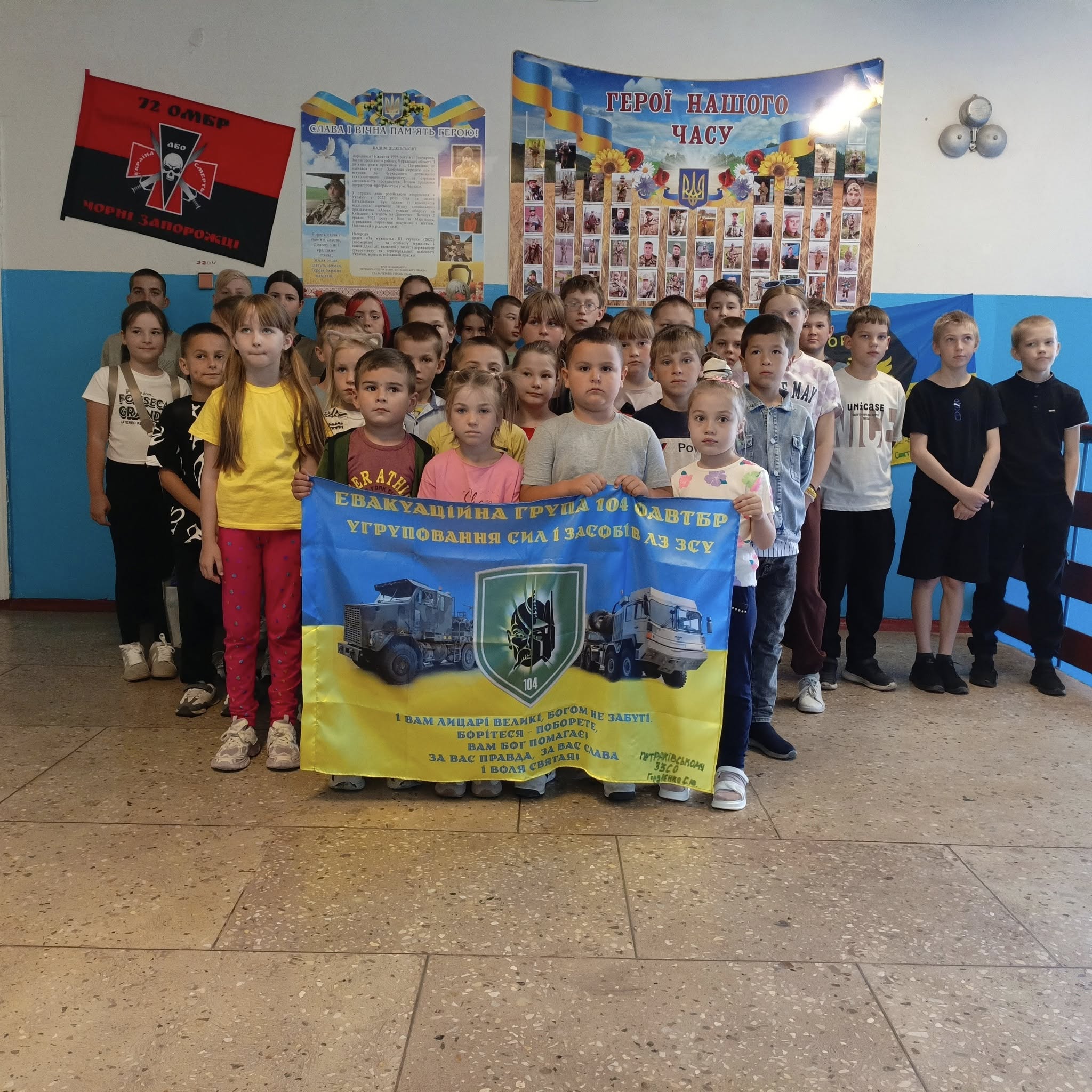 Петраківська гімназія, що на Калинопільщині, отримала цінний дарунок від випускника Гордієнка Сергія Юрійовича – стяг евакуаційної групи.