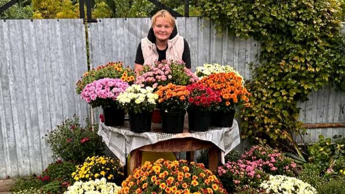 Квітникарка з Калинопільщини подарувала своєму селу власноруч вирощені хризантеми