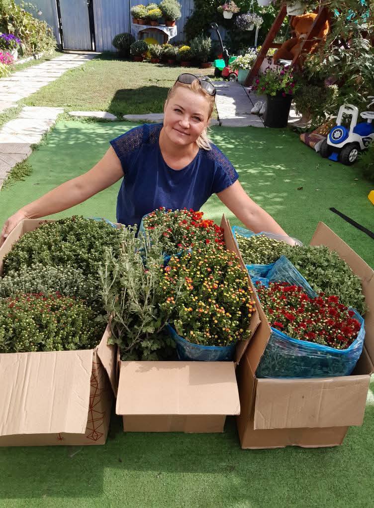 Альона Сітар із Петраківки, як і всі жінки, залюблена в квіти. Перебуваючи в декретній відпустці, вона захопилась вирощуванням хризантем, і тепер має на своїх грядках їх до сотні видів.