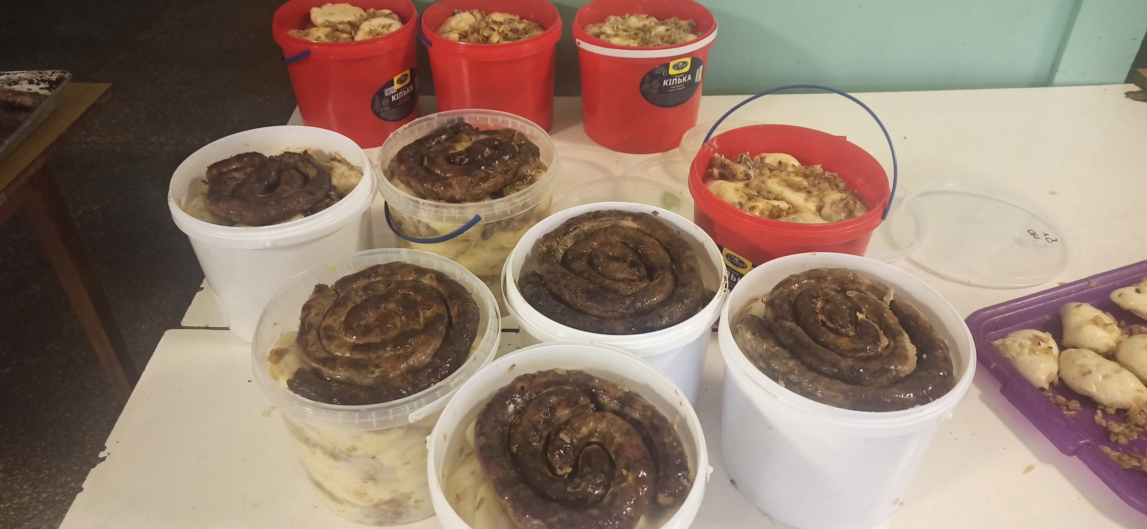 Колектив Вікнинської гімназії до свят приготував воїнам домашню ковбасу, смачнючі пиріжки, вареники та рулети з сала.