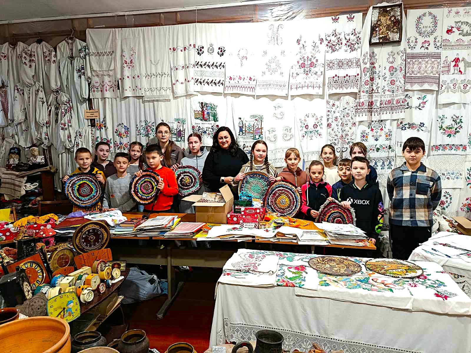 «Надзвичайно насичені були ці дні, – розповідає вона. – Музей став, як вулик добра, до якого приносили діти гроші, смаколики, предмети гігієни, мов оті маленькі бджілки мед до вулика. За зібрані кошти учні ліцею придбали продукти харчування, засоби гігієни, шкарпетки… А у нашому вулику постійно кипіла робота: в’язали килимки. Поспішали встигнути до свят та до зустрічі з черкаською волонтеркою, у минулому ученицею нашої школи Лілією Романовою, що відбулася напередодні Дня волонтерів та Збройних сил України. Тепла зустріч, море позитивних вражень, світлина на пам’ять залишать приємні спогади та нову мотивацію продовжувати розпочату справу творити добро і разом наближати перемогу над ворогом».