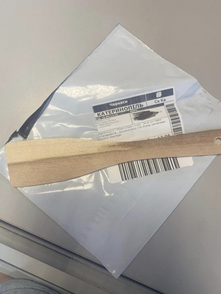 По факту з’ясувалося, що у посилці – дерев’яна лопатка для пательні, а до сплати – 350 гривень. Добре, що жінка не оплатила цей «дарунок» і перевірила його на місці. Такий товар (з візитками, рекламою, лопатками, саджанцями осики замість магнолій) часто надходить довірливим покупцям, а вже вдома їх очікує розчарування.
