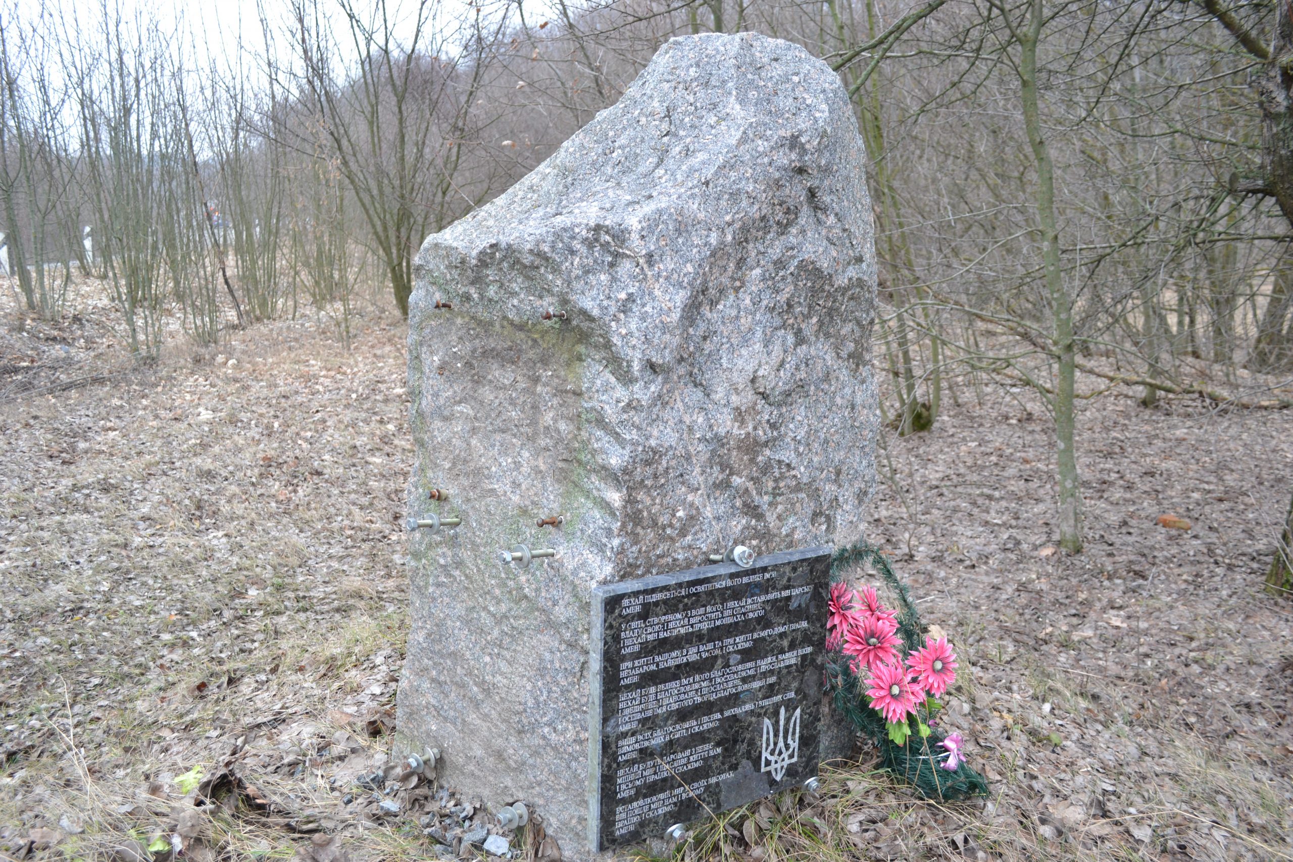 – Влітку я обкошував пам’ятник, доглядав із дітьми, коли ще працював у школі, – каже Лаврега. – Також за дошкою доглядали лісівники. Щотижня я їздив дорогою повз пам’ятний знак. Ще минулого вівторка все було гаразд. А в суботу, 15 лютого, повертався з лисянського базару й побачив, що дошку розбито на друзки. Знищили саме текст написаний івритом. Там була молитва – частина тексту із Тори. Що цікаво – український переклад єврейського тексту із тризубом на іншому боці пам’ятника – не чіпали. Мабуть, щоби кинути тінь на патріотичні сили. Обломки єврейської таблички я забрав до себе додому. Відразу зателефонував у поліцію. Поліцейські миттю прибули на місце, зафіксували факт знищення, ведуть слідство.