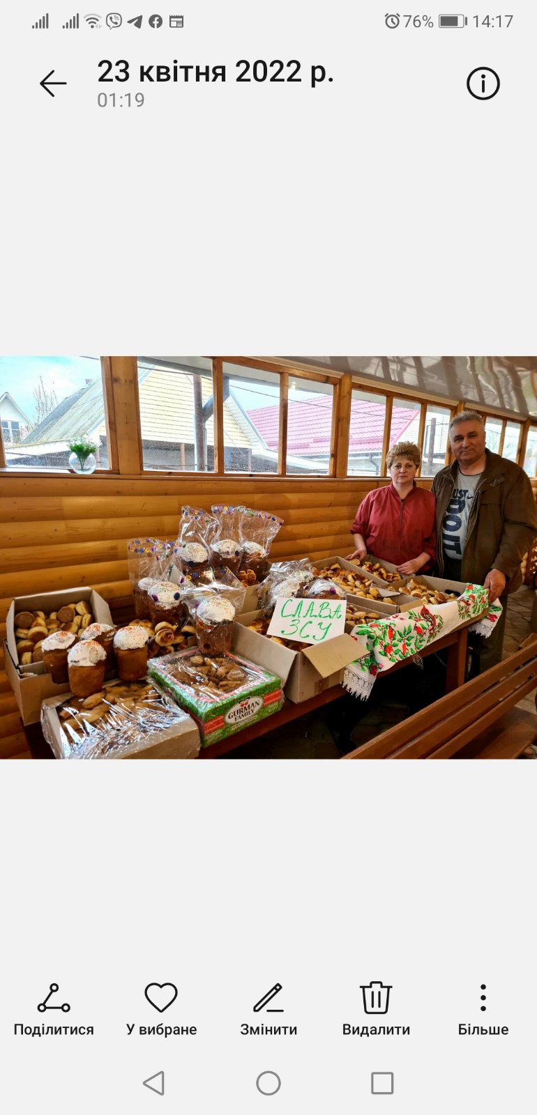 Працівники сільської ради, НВК, торгівлі, бібліотеки, небайдужі жителі села, які зайняті випічкою, вкладають у свої вироби своє вміння і частинку душі. Тому вони такі смачні. А молоко, борошно та інші інгредієнти постачає сільськогосподарське підприємство «Рось», директором якого є Віктор Томіленко. Він щодня доставляє до гуманітарного центру в Лисянці 40-50 кілограм кондитерських виробів. А ще – молоко для виготовлення згущеного молока для наших захисників.