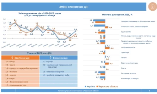 На Черкащині за жовтень 2025 року споживчі ціни зросли на 0,5 %.