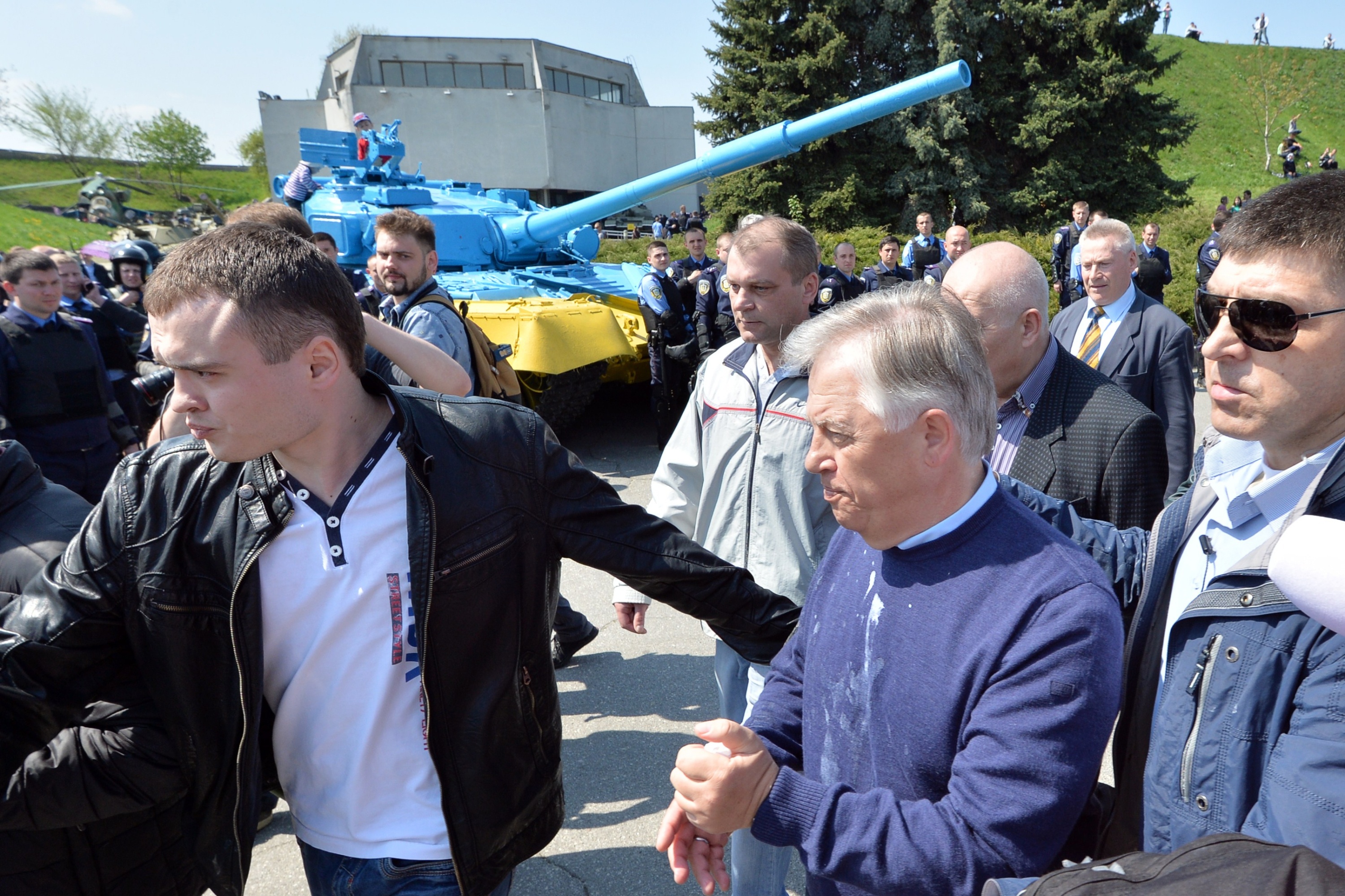 Петра Симоненка облили кефіром на комуністичному мітингу в Києві, 1 травня 2015 року.
