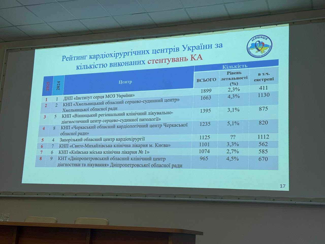 Крім другого місця за кількістю та якістю хірургічного лікування ішемічної хвороби, черкаський кардіоцентр посів четверте місце і за кількістю стентувань коронарних артерій.