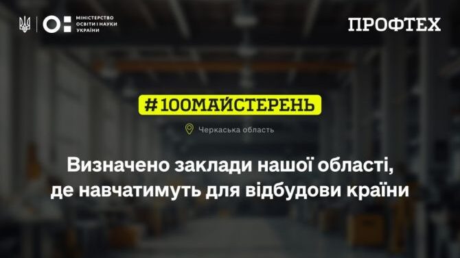 На це держава спрямує майже 12 млн грн у межах проєкту #100майстерень, повідомляють в управлінні освіти і науки Черкаської ОВА.