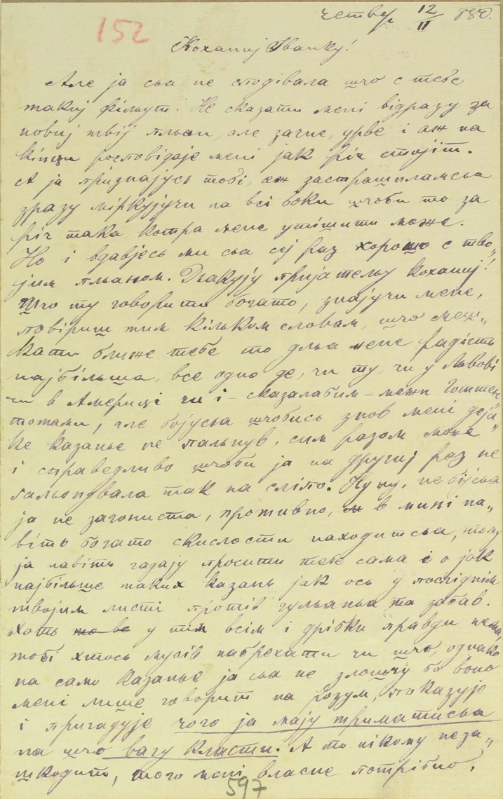 Фрагмент листа Ольги Рошкевич Іванові Франку, фото: dzerkalo.media