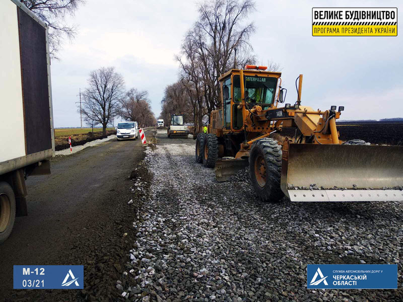 Продовжуються роботи з поточного середнього ремонту на міжнародній автомобільній дорозі державного значення М-12 Стрий-Тернопіль-Кропивницький- Знам’янка км 576+388 – км 583+279 в Уманському районі.
