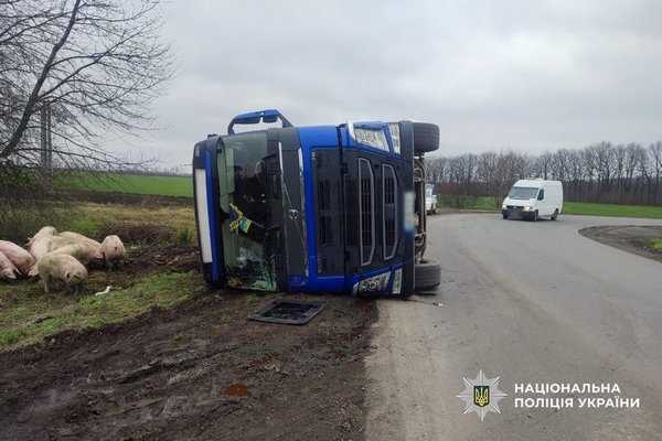 У Христинівці перекинулась вантажівка зі свиньми. Внаслідок ДТП тварини випали з напівпричепа. Транспортний засіб зазнав механічних пошкоджень, розповіли у пресслужбі поліції області.