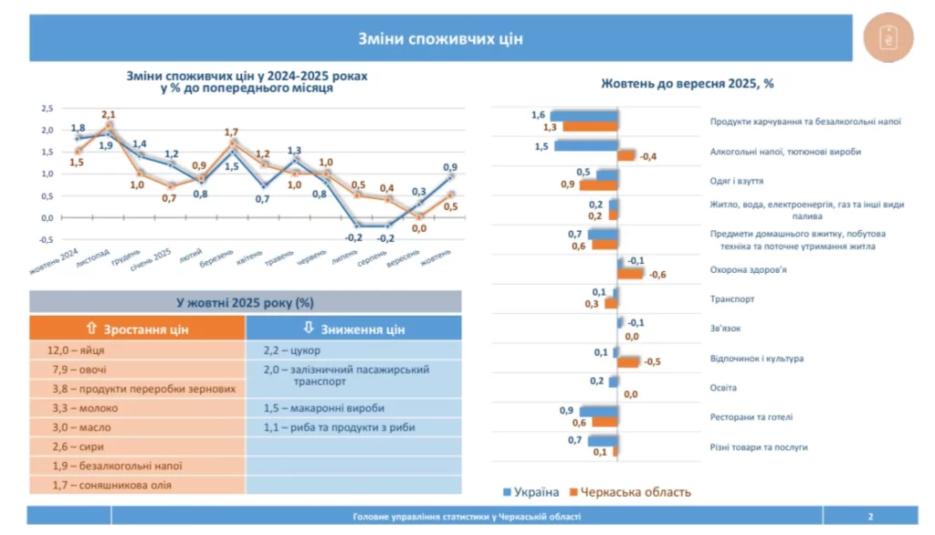На Черкащині за жовтень 2025 року споживчі ціни зросли на 0,5 %.
