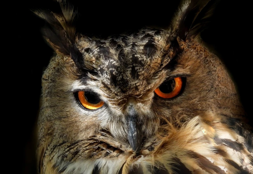 Пугач (велика сова) – найбільша сова Європи з “вухами” та проникливим поглядом. Полює вночі, мешкає в старих лісах;