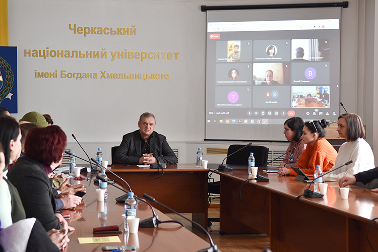Зустріч, яка зібрала 70 осіб в залі та ще понад 110 за допомогою Google Meet, відкрила модератор заходу професорка, директорка Навчально-наукового інституту міжнародних відносин, історії та філософії Черкаського національного університету імені Богдана Хмельницького — Наталка Земзюліна.