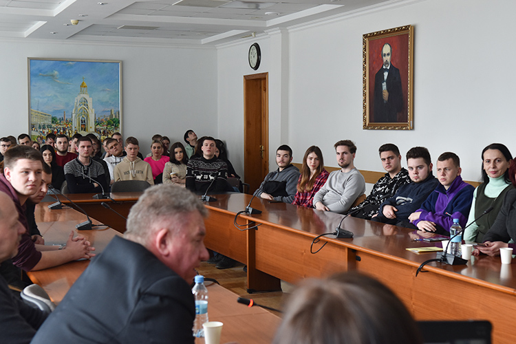 Олексій, завдяки професії, побував на багатьох напрямах фронту, поспілкувався з абсолютно різними людьми. З людьми настільки різними, що в цивільному, мирному житті вони ніколи б не перетиналися. Їх об’єднала війна. Фронт стер відмінності, залишив тільки спільне, головне — необхідність захистити Батьківщину. Вразили Олексія і вороги, мав можливість поспілкуватися з полоненими росіянами. На власні очі побачив те, що здається типовим збірним образом вагнерівця, мобілізованого ув’язненого злочинця з «промитими мізками». З такими не варто вести діалог. Олексій закликав не втрачати пильність, бо ми проходимо складний період, зазнаємо втрат, Перемога не буде простою. Згадав загиблих друзів, серед яких і ще один випускник інституту Женя Кучугурний. Згадав свій ранок 24 лютого 2022 року, як був вражений обличчями людей, коли вони бачили військового, людину в формі. Того страшного ранку у Києві в очах випадкових перехожих ловив одночасно співчуття і гордість; біль і полегшення. Це одне з незабутніх вражень цього року. Тішить, що Олексій має творчі плани, яким охоче поділився з учасниками зустрічі. Він мріє зняти фільм про звільнений Крим.