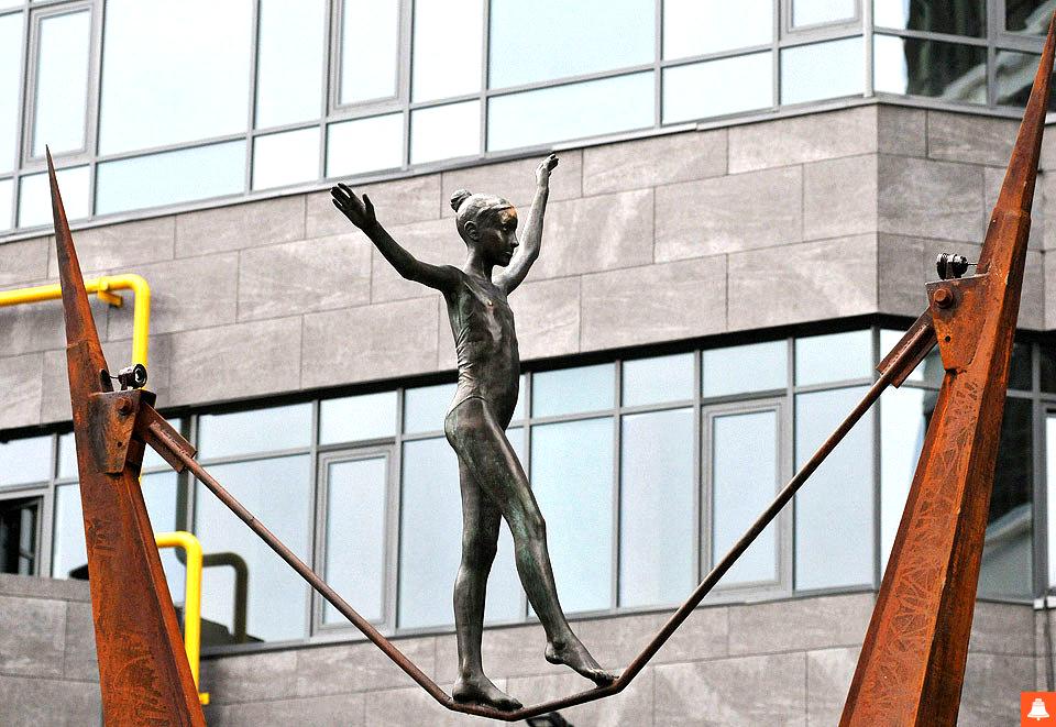 Автором проекту буде один із київських майстрів сучасної скульптури. Сама «повітряна» скульптура одним краєм кріпитиметься до стіни, яка виходить на вул. Хрещатик. Інша − до окремо встановленої опори. Це буде образ музиканта-скрипаля, що балансуючи, крокує по струні.