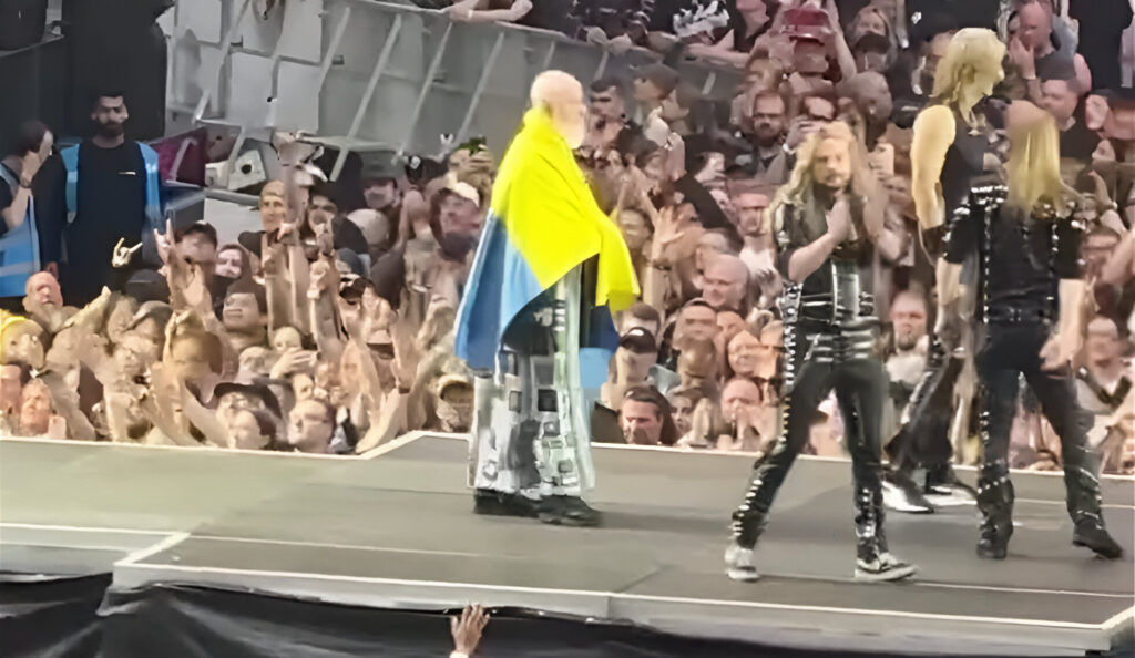 Вокаліст гурту Judas Priest Роб Гелфорд виніс український стяг на сцену концерту Scorpions. Він розгорнув прапор під час виступу на честь 60-річчя німецького рок-гурту.