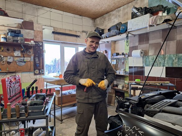 Наразі у ремонті в нього дві автівки. Говорить, що за умовами гранту повинен взяти також найманого працівника та збирається оформити свого побратима. Він після важкого поранення майже втратив зір та має 1 групу інвалідності.