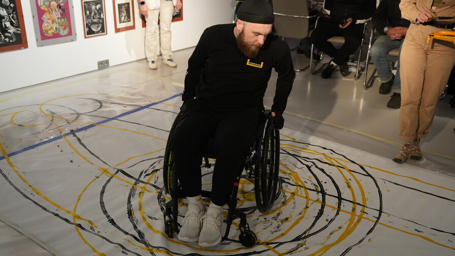Захисник Валентин Олексієнко створив картину за допомогою крісла колісного. Мистецьке полотно зафіксували в Національному реєстрі рекордів України як перше в історії, створене таким методом.