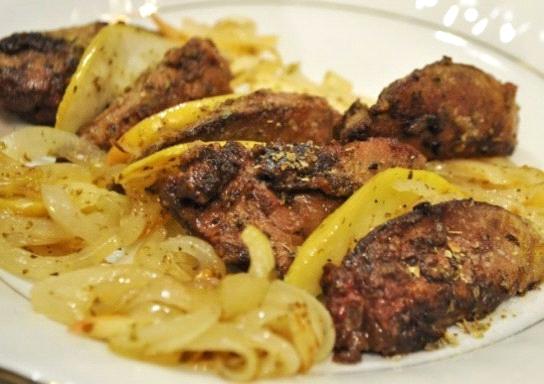 До печінки можна як гарнір подати яблучне пюре ( із тушкованих яблук). Лише додавши туди трохи лимонного соку, щоб суміш не темніла. А якщо додати туди ще й свіжої м’яти, страва вже набуде вишуканості. Вибір за вами. Смачного!