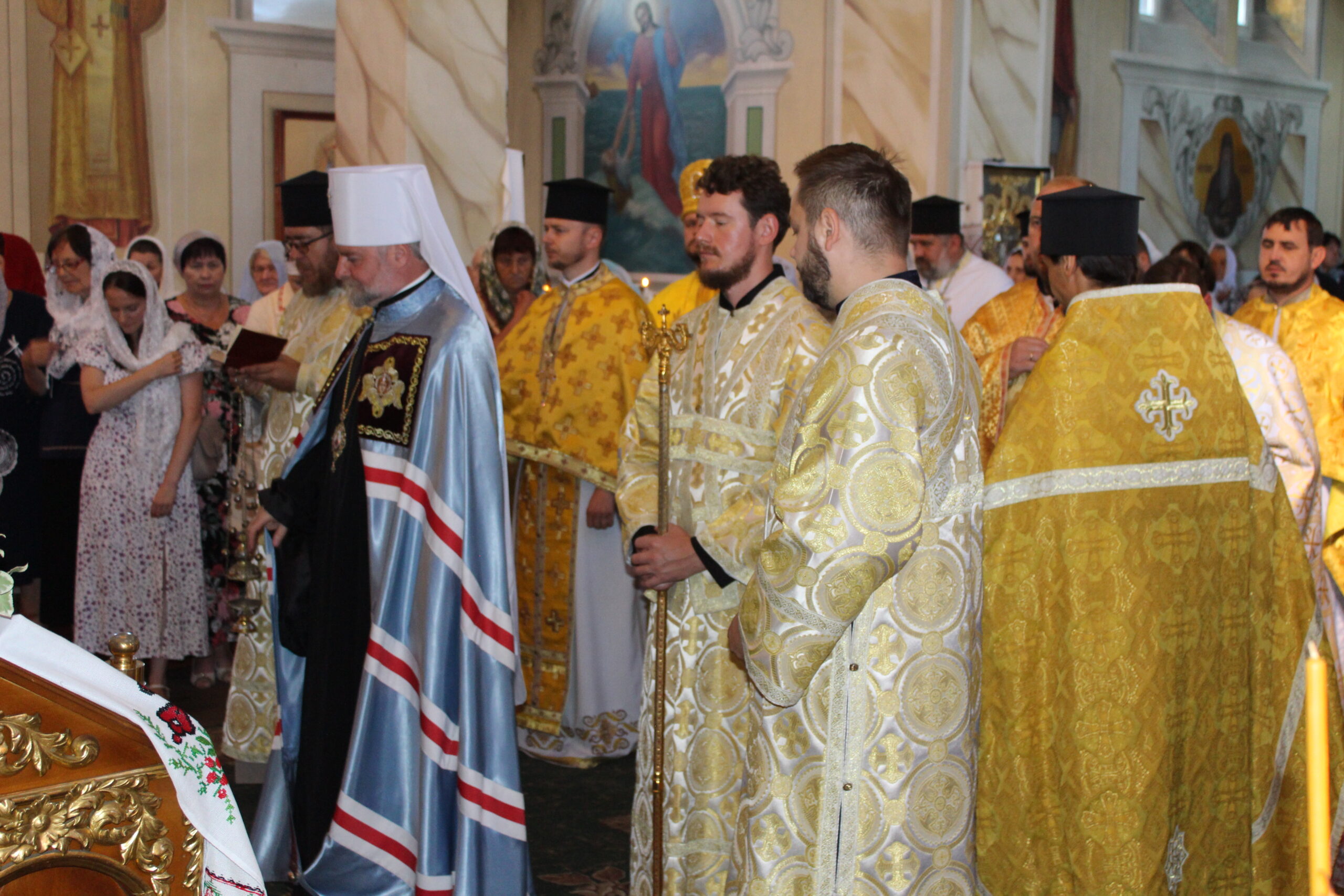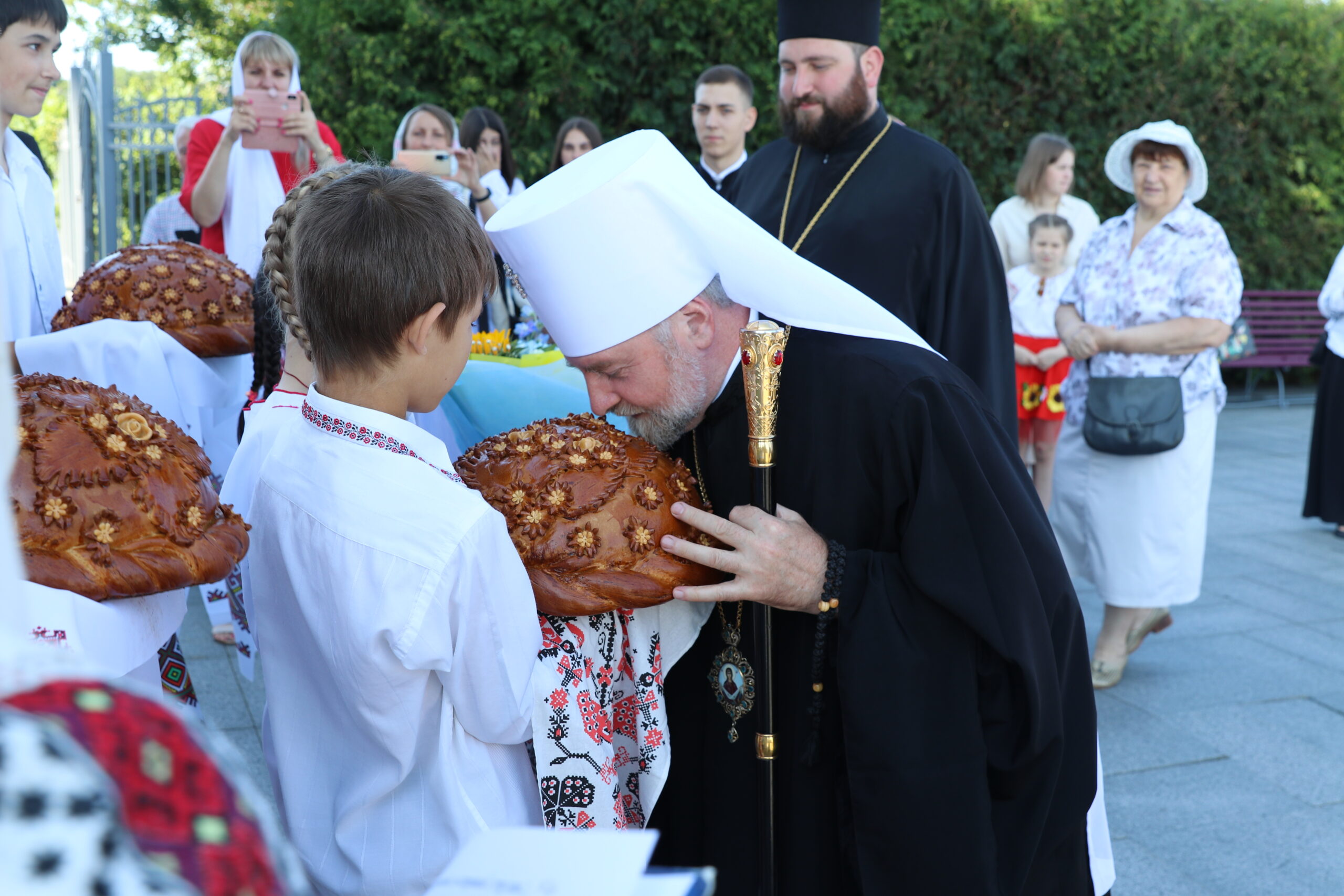 Гостей зустріли із святим короваєм, який вручили на вишитих рушниках діти. Під час служби Іоан молився за мир та Перемогу України та за військових, які захищають нашу країну, за Тальнівську громаду та їх жителів. Також розповів вірянам про подвижницький шлях Петра і Павла. Митрополит Іоан наголосив прихожанам православної церкви, на сімейних цінностях, як вони важливі у наш час: