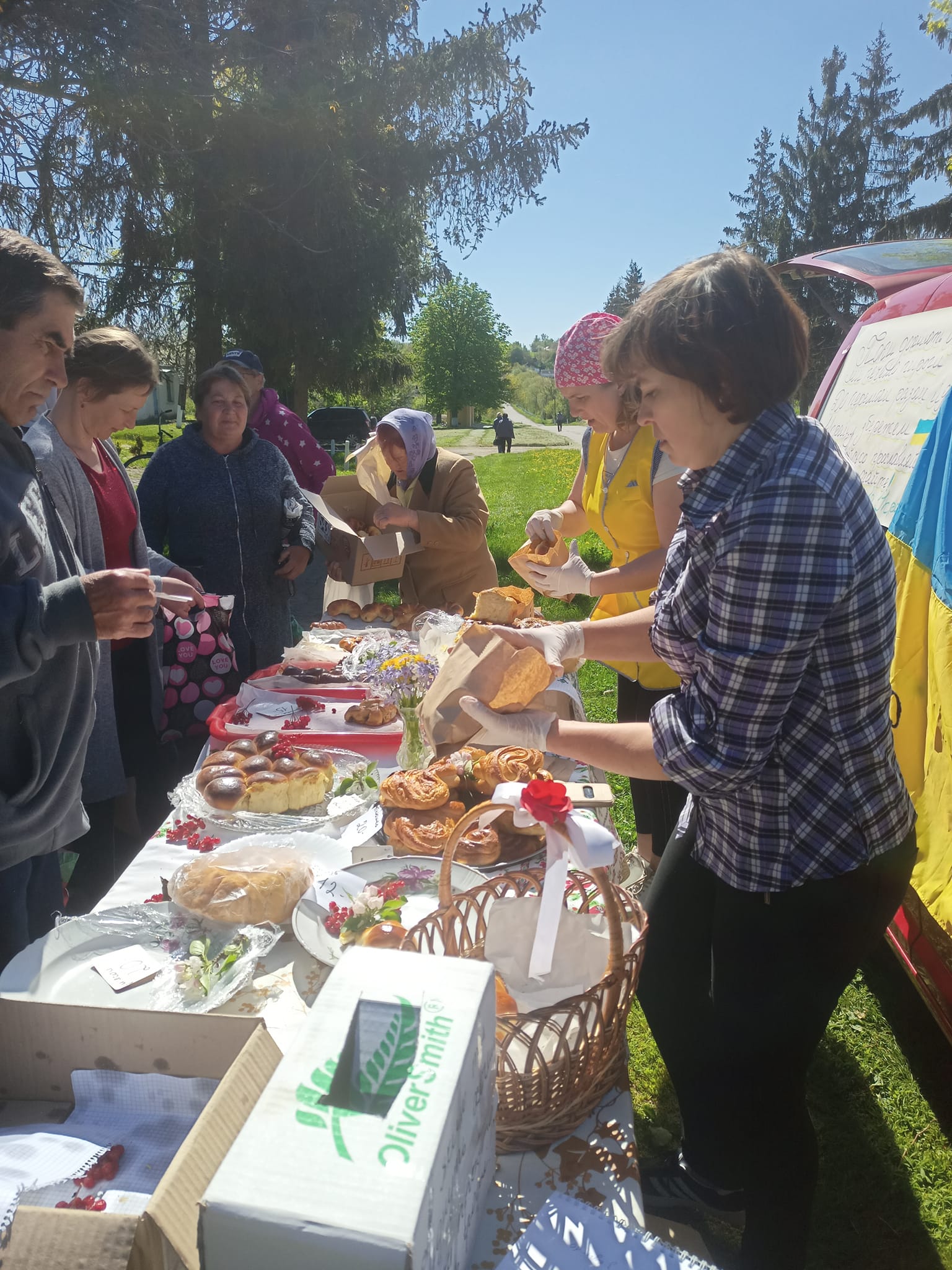 Спочатку написали оголошення у соцмережі місцевої групи, де повідомили односельців про збір необхідних продуктів для випічки. Потім зібралися 8 домогосподинь і заходилися фантазувати та випікати різні смаколики. Тож на ярмарку вибір випічки був достатній. Селяни могли придбати і поласувати домашніми пирогами, рогаликами і рулетами з різними начинками, булочками та голубами миру.