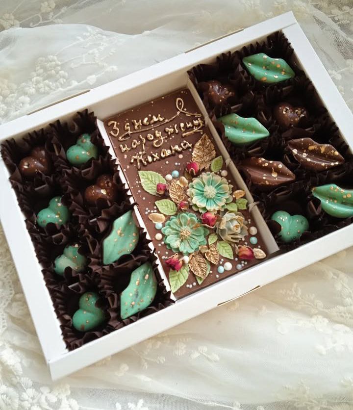 36-річна шоколатьє, відома своїми авторськими наборами шоколадних цукерок, створює справжнє свято у кожній коробочці. Її роботи – це гармонія смаку і форми, збагачена увагою до деталей та душевним підходом до кожного замовлення.
