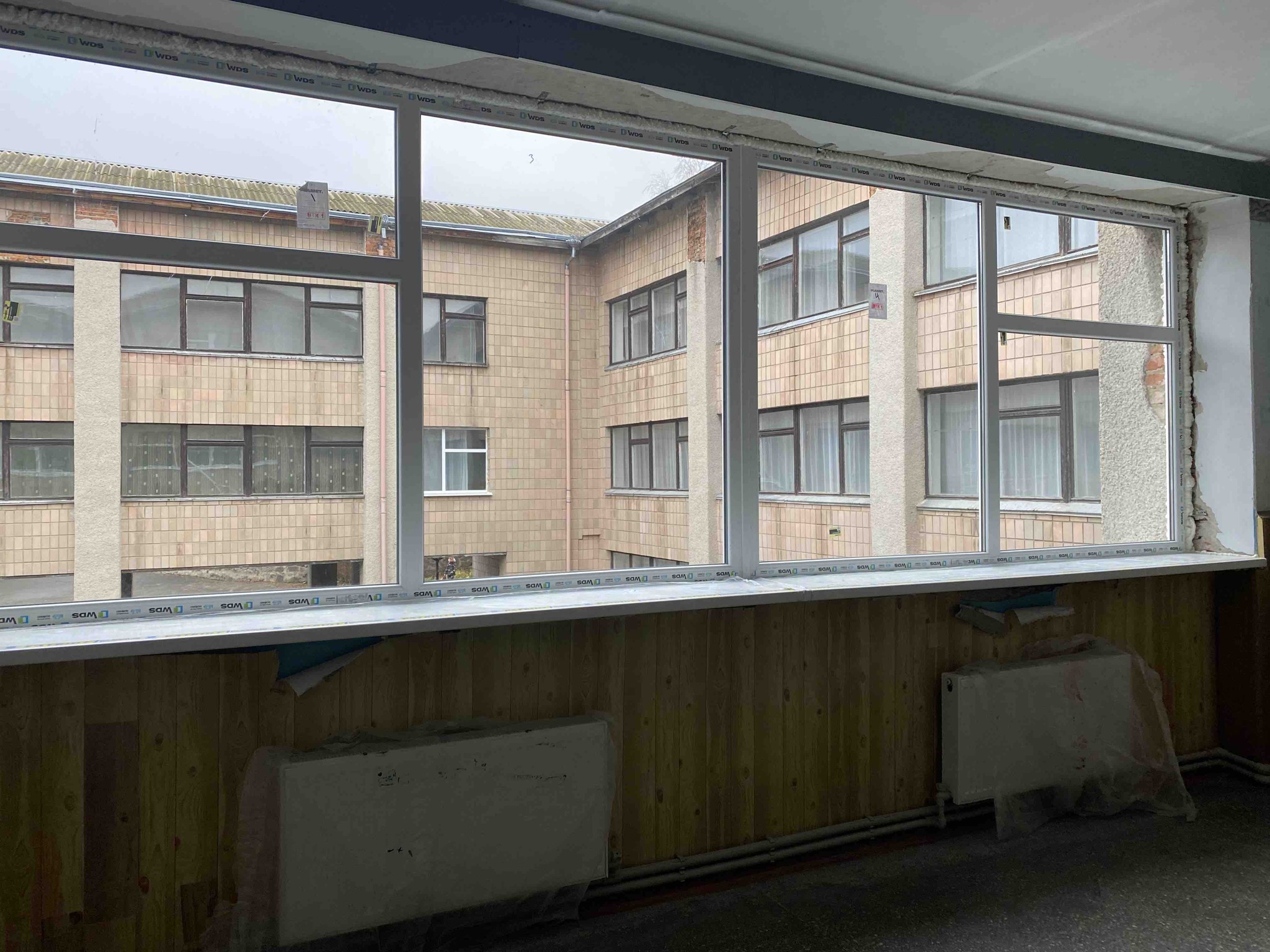 У школі замінили вікна на одному з коридорів другого поверху. Роботи триватимуть і надалі, щойно буде можливість. Також у класах та службових приміщеннях проводять заміну освітлення.