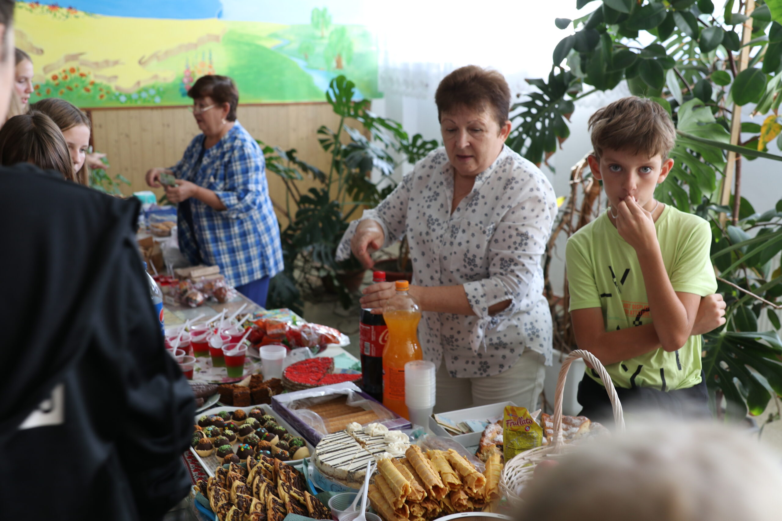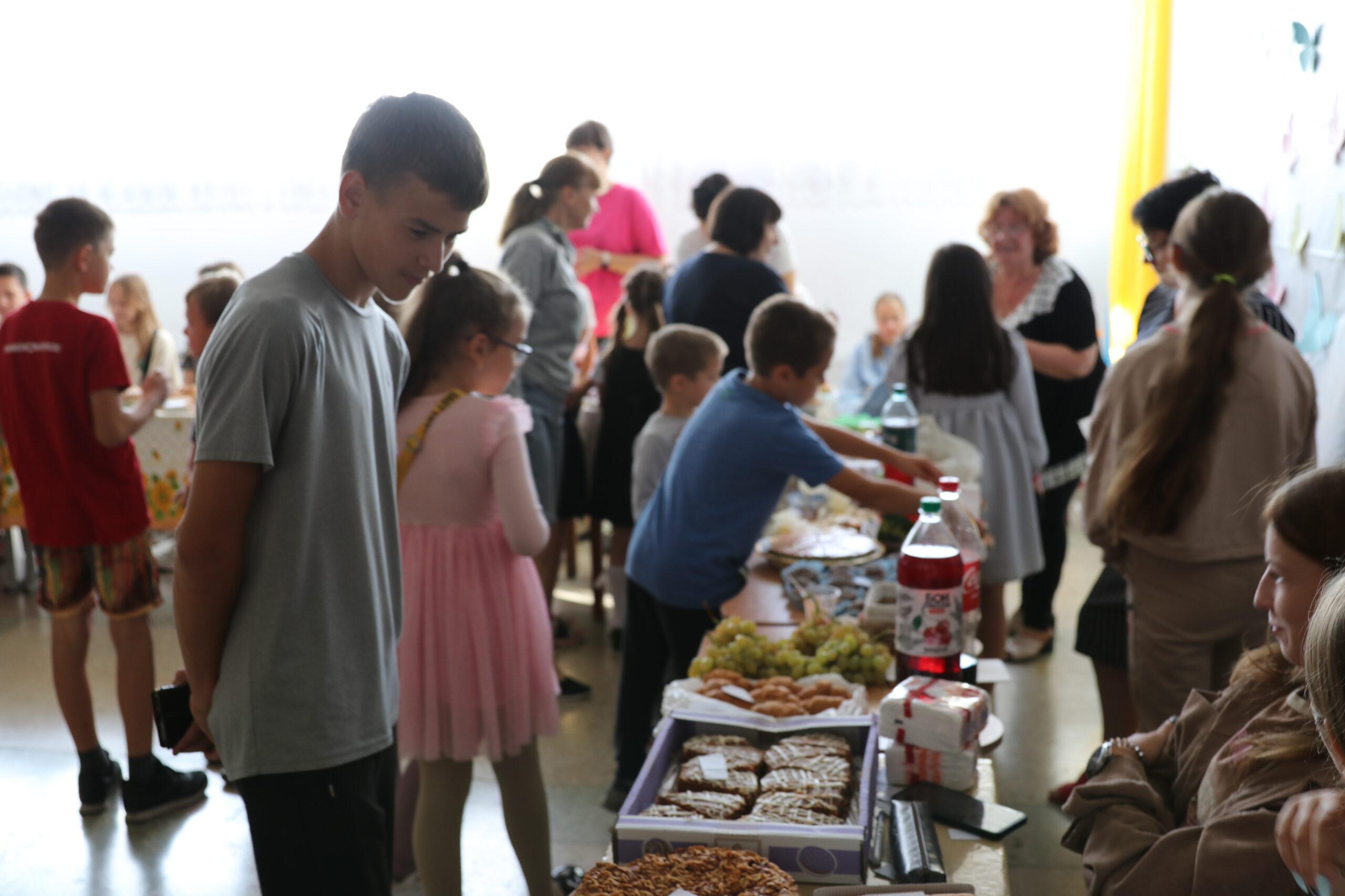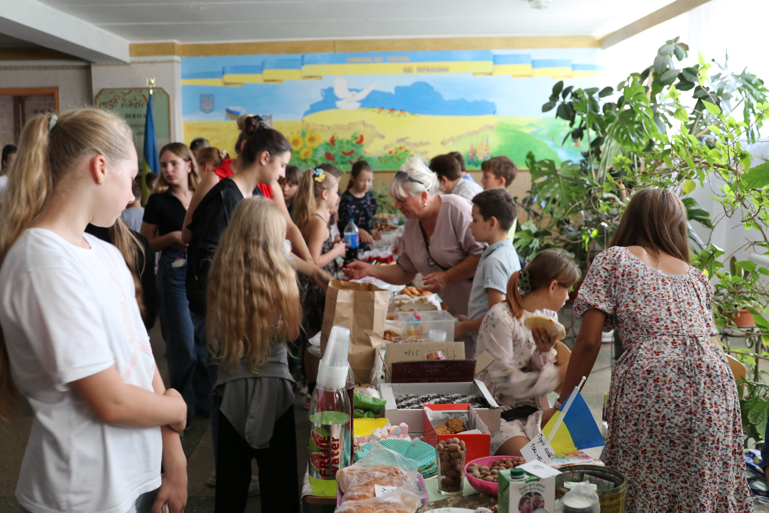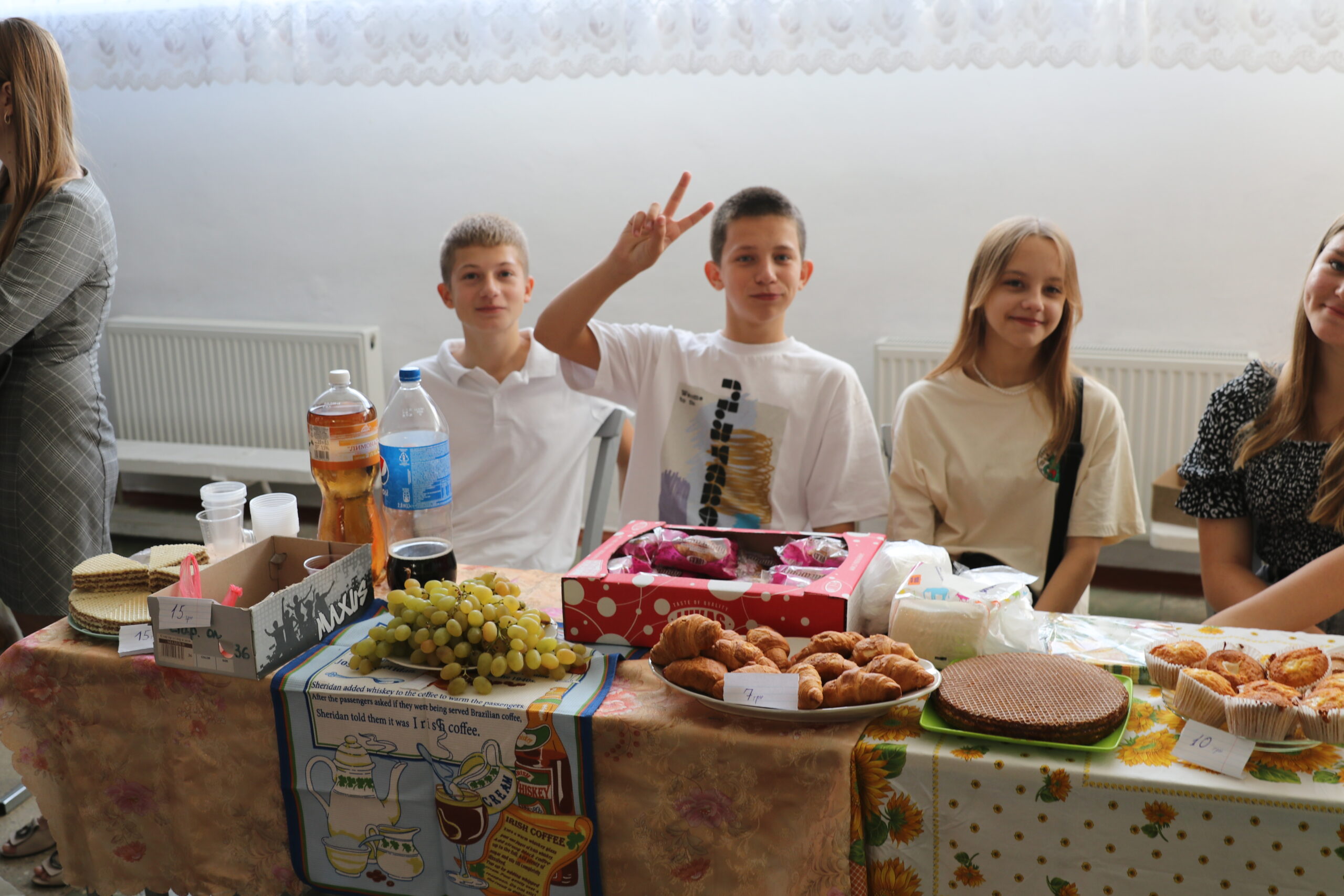 Доброчинний захід розпочався зі вшанування пам’яті загиблих випускників, їх у школі, на жаль, уже 6. Акцію організували у межах великого осіннього збору (ще один ярмарок відбудеться 29 вересня в парку ім. Шевченка) для підтримки ЗСУ. Зокрема, збирають кошти на автівку для військового підрозділу випускника закладу Максима Рогульського. Від початку повномасштабного вторгнення надходить багато запитів про допомогу від випускників, воїнів-освітян та учнів, чиї батьки на фронті захищають Україну.