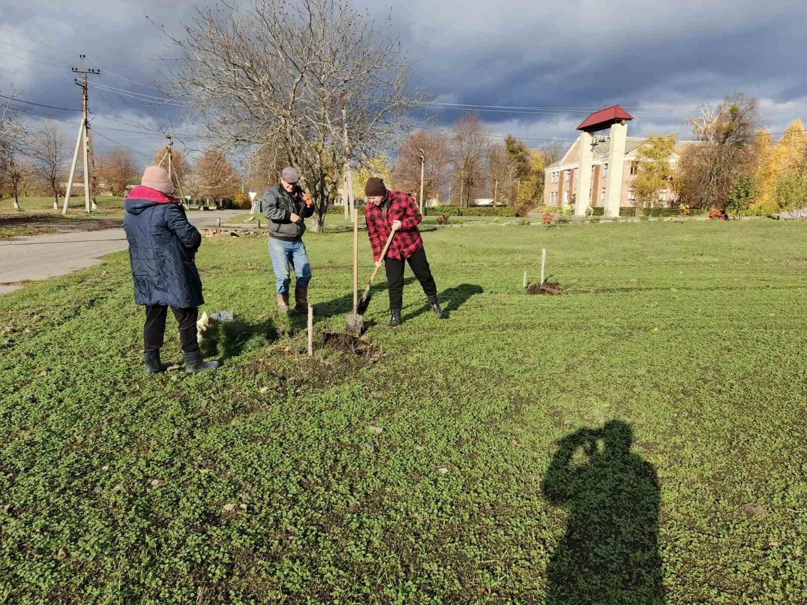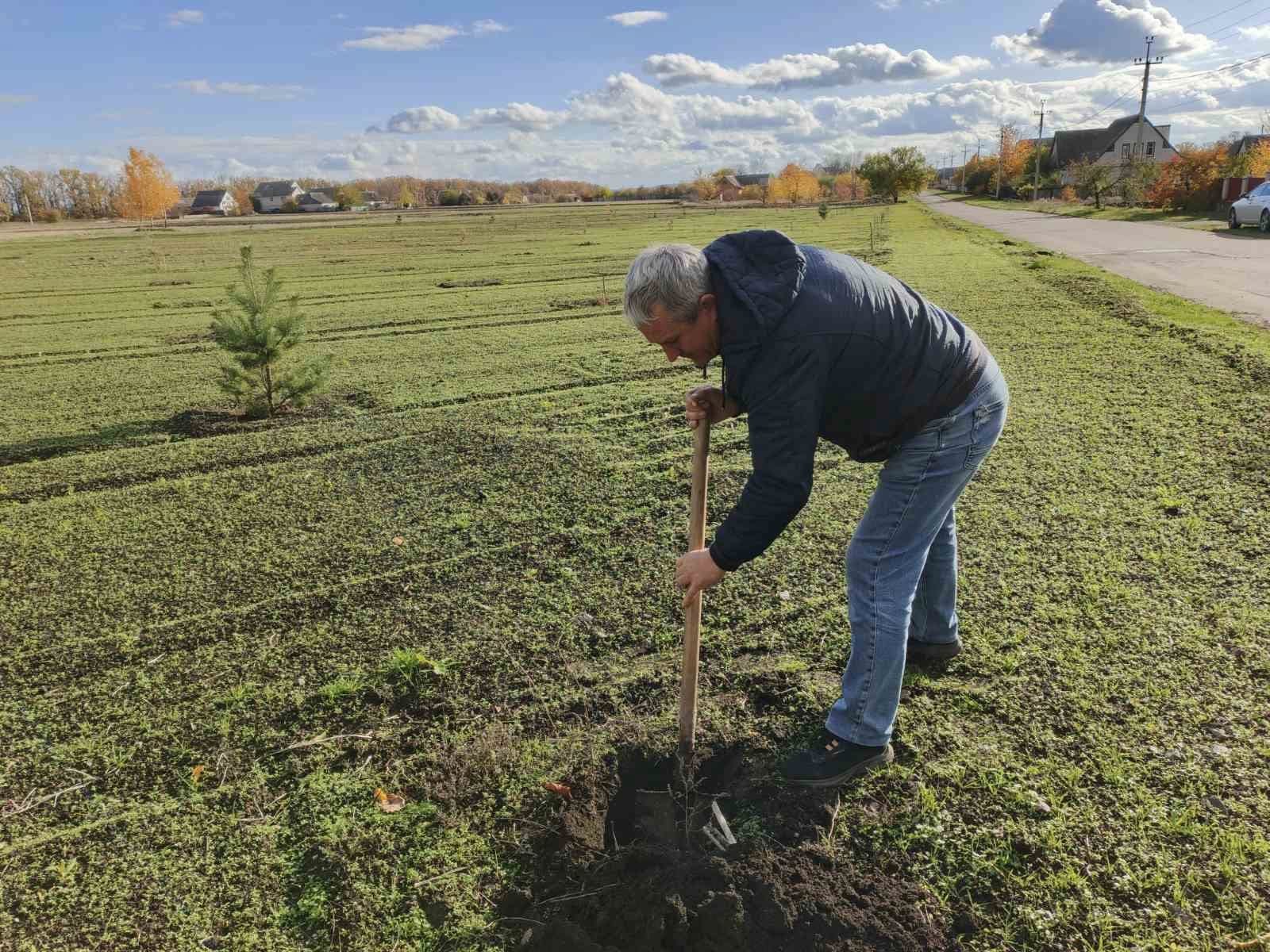У селі Здобуток продовжують озеленювати громаду: висаджено молоді сосни
