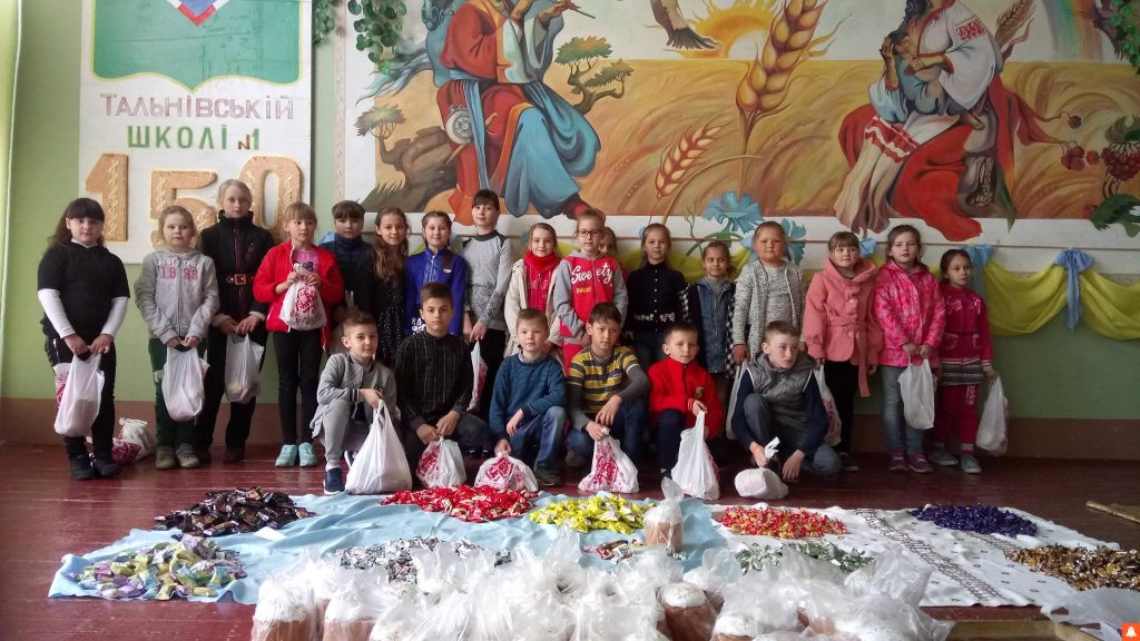 У понеділок 24 квітня учні та вчителі Тальнівської школи №1 спакували захисникам України, які перебувають у зоні бойових дій, понад 100 пакунків із пасочками та солодощами.