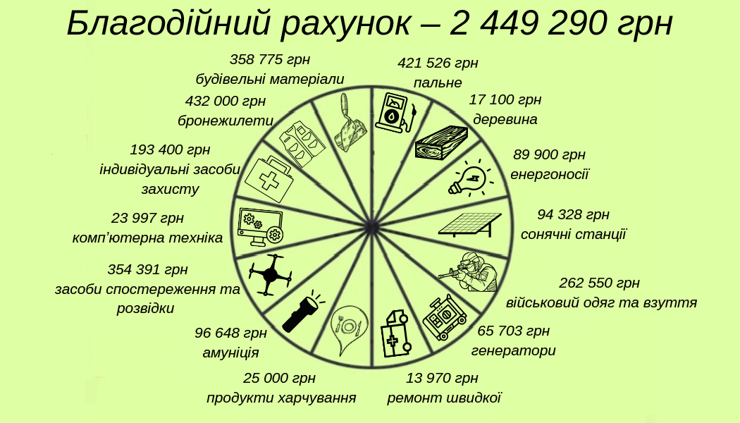 На потреби військовослужбовців із коштів місцевого бюджету було спрямовано 541 712 грн, а з благодійного рахунку – 2 449 290 грн.