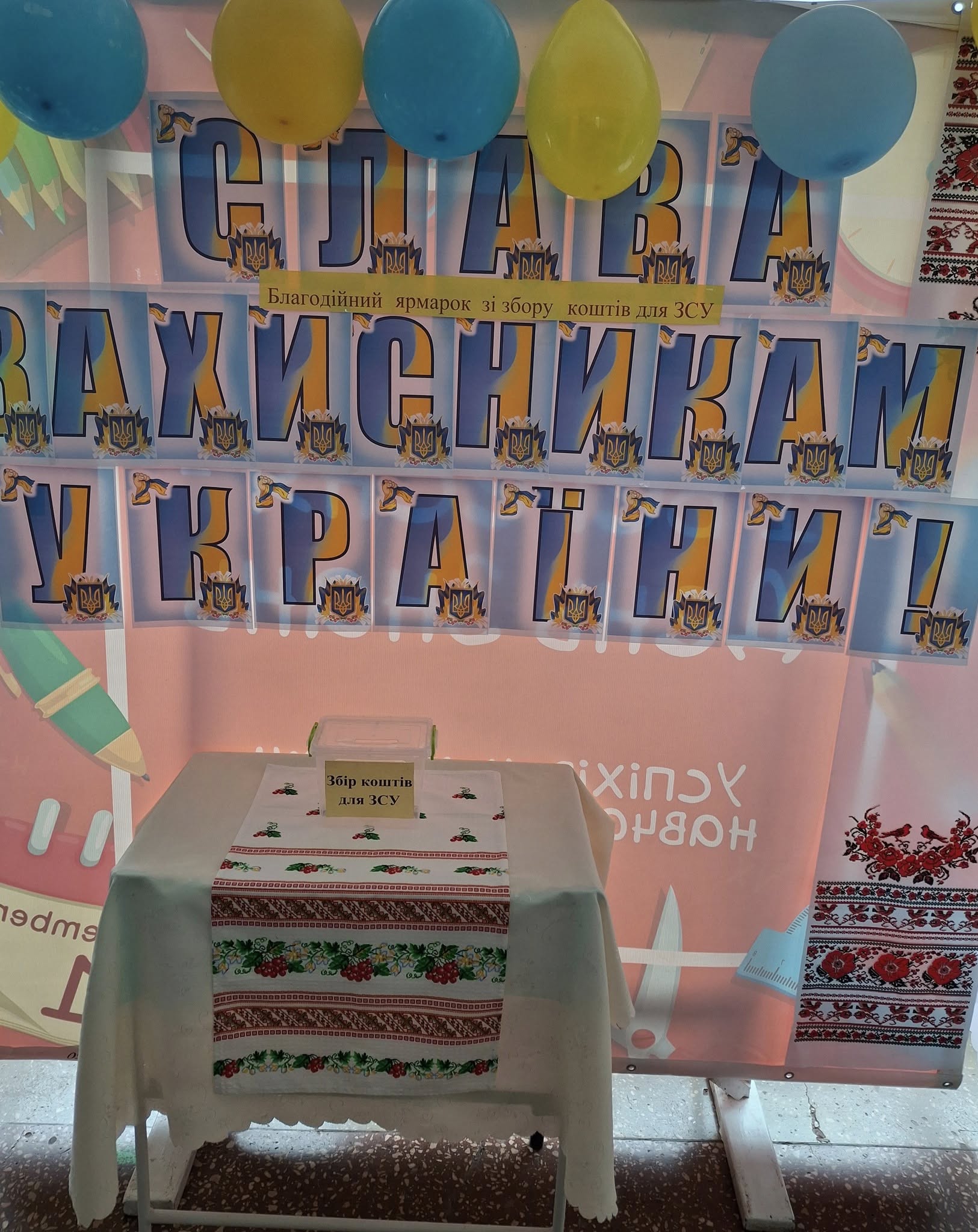 Однією з ключових ініціатив стала благодійна ярмарка «Мій маленький внесок у Велику Перемогу», яку школярі організовують щороку. Це не просто захід – це день, коли школа перетворюється на живу майстерню добрих справ. Учні готують випічку, власноручні вироби, сувеніри, а вчителі допомагають організувати роботу та провести продаж. Усе заради однієї мети – зібрати кошти для наших захисників.