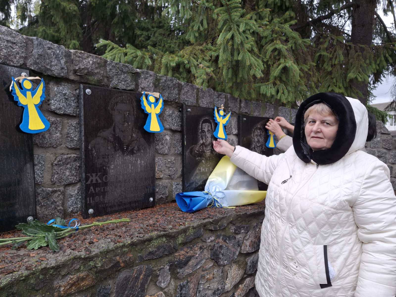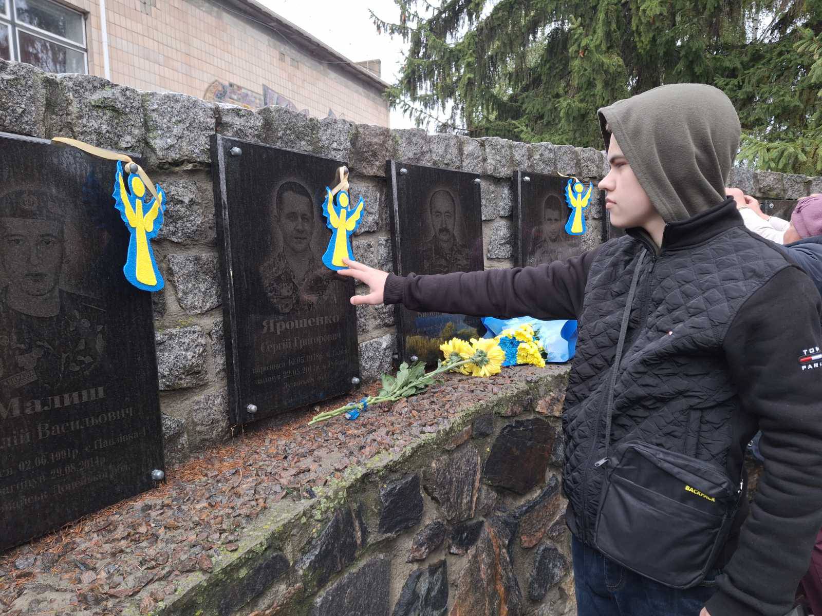 Після хвилини мовчання та виконання Державного Гімну України відбулося покладання квітів до пам’ятника Героям Небесної Сотні та Захисникам України. Ангелочки прикріпили і біля світлин Героїв Небесної Сотні, учасників АТО та ООС.