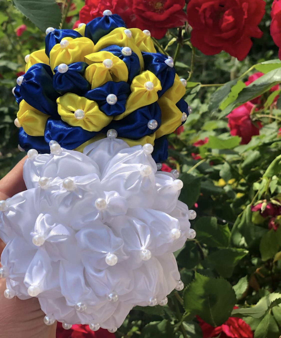 Надія Опанащенко жителька села Легедзине на Тальнівщині працює обліковцем-бригадиром у сільському господарстві. Нещодавно жінка, почала власноруч створювати прикраси для волосся – обручі, шпильки, резинки, бантики. Вперше свою креативність пані Надія втілила у життя перед днем народженням сестри – зробила букет квітів зі стрічок. Відтоді серйозно задумалась над тим, аби робити подібні вироби і виручені кошти спрямовувати на ЗСУ. Така творча здібність Надії передалась від мами, адже вона теж любить створювати щось цікаве.