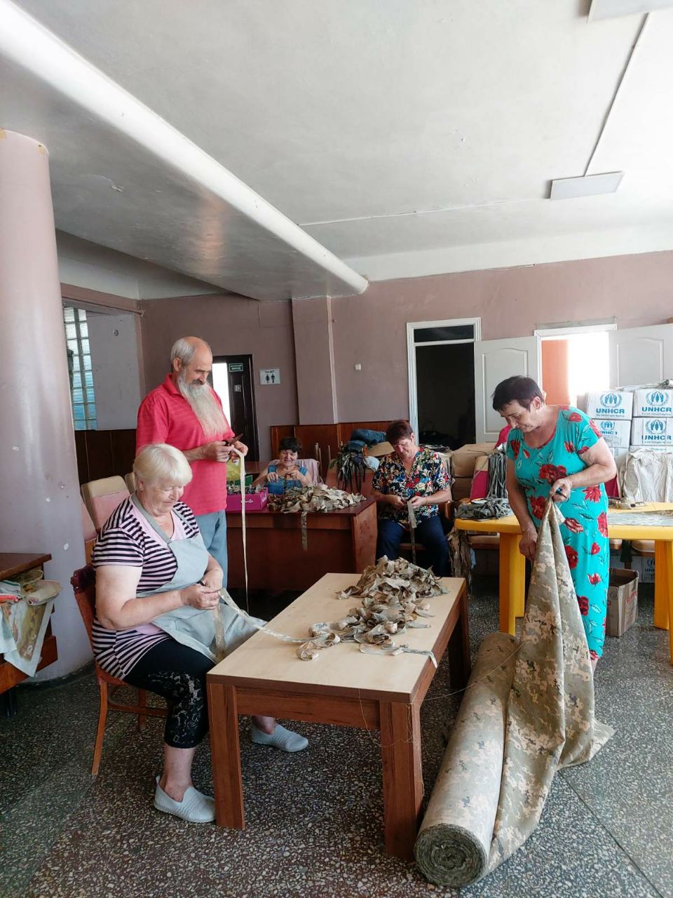 –Нашими виробами прикривають техніку й бліндажі, – кажуть майстрині. – Для виготовлення сіток використовуємо натуральну тканину різних кольорів, залежно від сезону. Восени – коричневу, жовту, гнило-зелену. Взимку – білу й трохи чорну кидали, сіру. Навесні – зелену з домішками яскраво-зеленого. Улітку використовуємо кольору трави й листя. Барви повинні бути природні, схожі на землю, пісок, очерет, дерева, каміння.