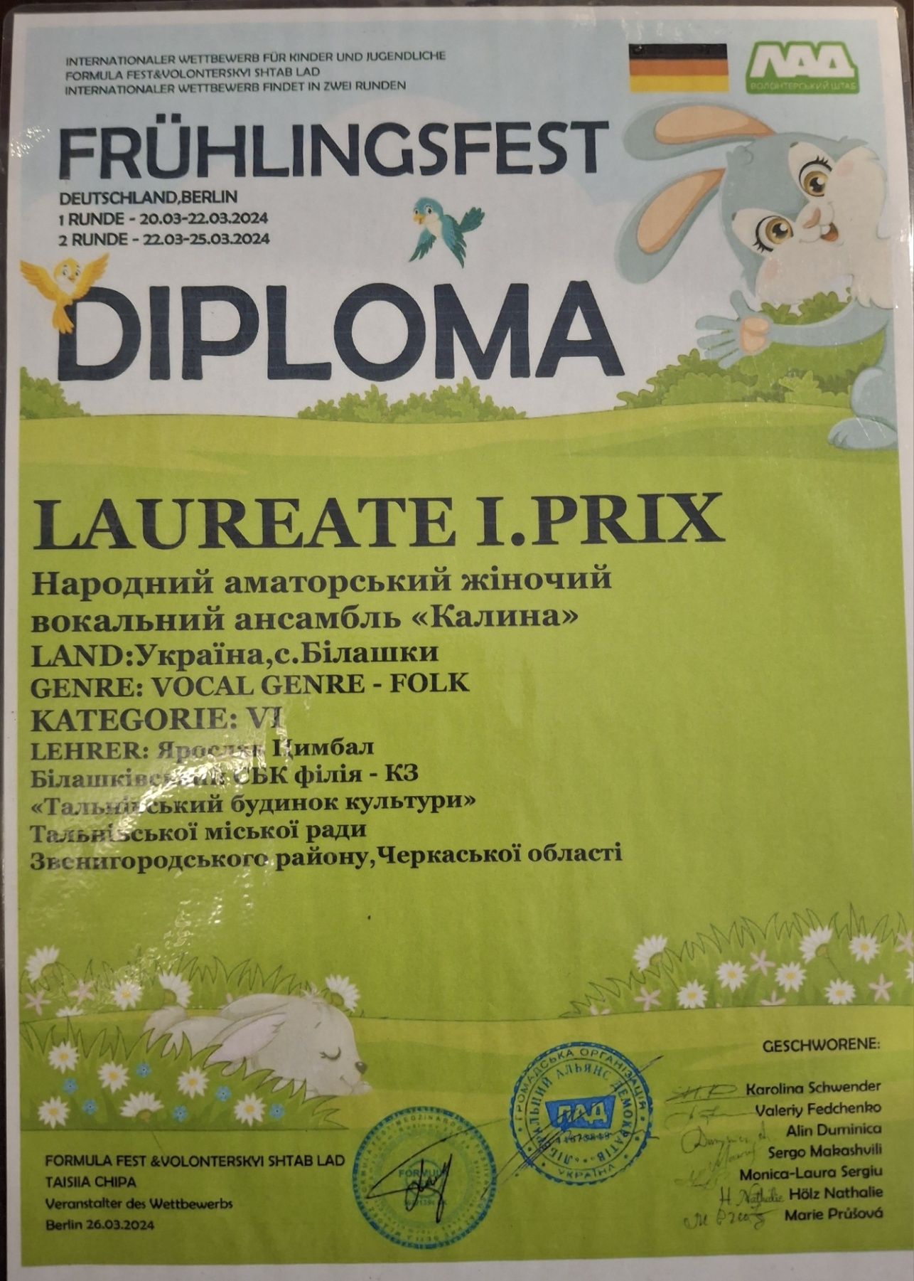 Проте для Ярослава Цимбала важливий не лише спів, а й підтримка співвітчизників у складні часи. У червні в Білашківському будинку культури до Дня захисту дітей відбудеться святковий концерт за участю ансамблю «Калина». А вже в неділю, 13 квітня, колектив виступатиме на Тальнівському базарі на підтримку Збройних сил України. І це лише один із багатьох благодійних заходів, у яких він активно бере участь.