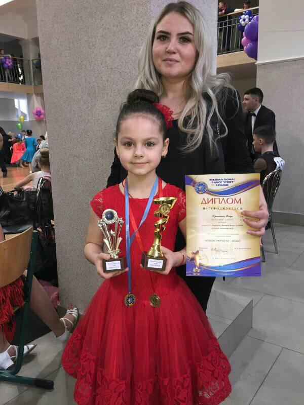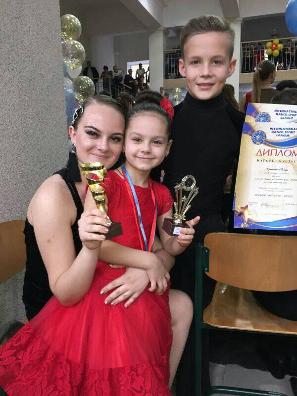 –Це було непросто, вистояти на ногах було важко, – ділиться враженнями Наталія Петрівна. – Учасники турніру були сильними. За фінальні місця, між нашими дітьми та з Дніпропетровська, велася запекла боротьба. Додому ми привезли 3 командних кубки («Формейшн» у категоріях «Юніори», «Юніори соло» та «Ювінали»), 16 кубків вибороли діти-початківці та 19 – учасники професійної категорії. Усі ці кубки – за перші місця, золото. Виступи усіх наших початківців отримали найвищу нагороду, а серед професіоналів – лише два 2-х місця, решта – золото. Хочу особливо відзначити наших діток-переможців, зокрема, серед професіоналів – Аріанну Нестеренко та Алігейдара Слободяника (категорія «Молодь»), Дмитра Кутового та Софію Бубнову (категорія «Юніори І»), Олександру Цимборович та Іллю Замелюхіна (категорії «Ювінали ІІ» та «Юніори І»), Артема Фещенка та Вероніку Лисенко (категорія «Юніори І»), Іллю Юрченка та Аріну Сорокопуд (категорія «Юніори І», латиноамериканська програма). У напів професіональній категорії – Артема Рябошапку та Олександру Долоніну (категорія «Юніори ІІ»), Владислава Рейнюка та Дарину О. Бен Отман (категорія «Ювінали ІІ»), Валерія Рябошапку та Олександру Губчик (категорія «Ювінали ІІ», латиноамериканська програма). Серед дівчат, які танцювали соло, хочу відзначити Софію Медведєву (категорія «Юніори соло», професіонали, латиноамериканська програма), Олену Шмідт (категорія «Юніори соло», напів професіонали, латиноамериканська програма), Ольгу Карпенко («Юніори ІІ соло», напів професіональна категорія). Серед початківців наша наймолодша 4-річна учасниця Марія Лисенко здобула золото у категорії «Бебі» та обігнала дівчат у номінації «Діти 6-7 років».