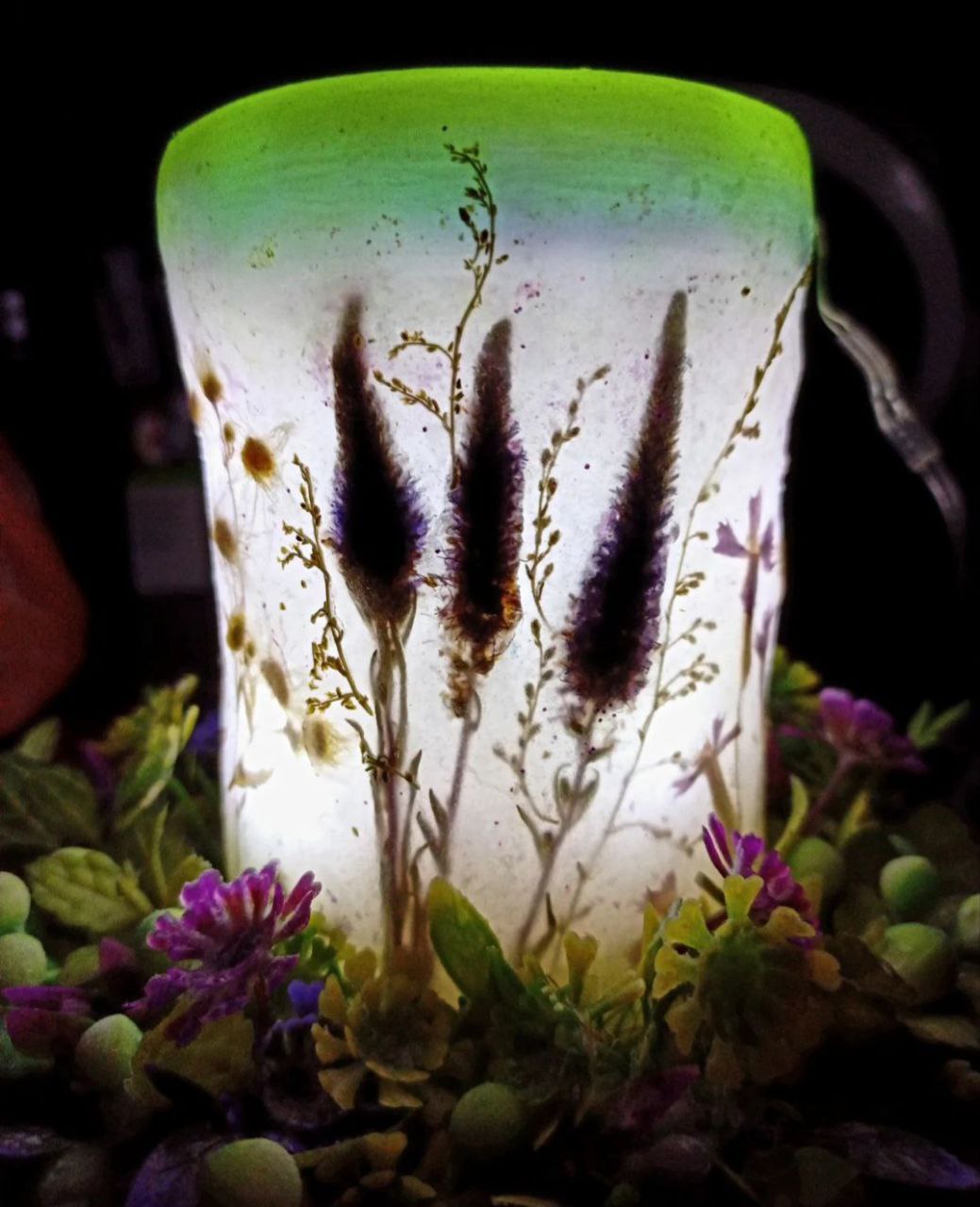 Умілі руки мисткині виготовили сотні різноманітних виробів. Чільне місце серед них займають свічки, які вона виливає із бджолиного та соєвого воску. Наприклад, великодній кошик, пасочки, гарбузики, старий млин, українські хатинки. Для їхнього оздоблення використовує сухоцвіт, камінці, мушлі. До окремих свічок додає ароматичні олії. Не можна відвести зачудованого погляду від так званих «лампіонів» – світильників з парафіну, декорованих натуральними матеріалами.