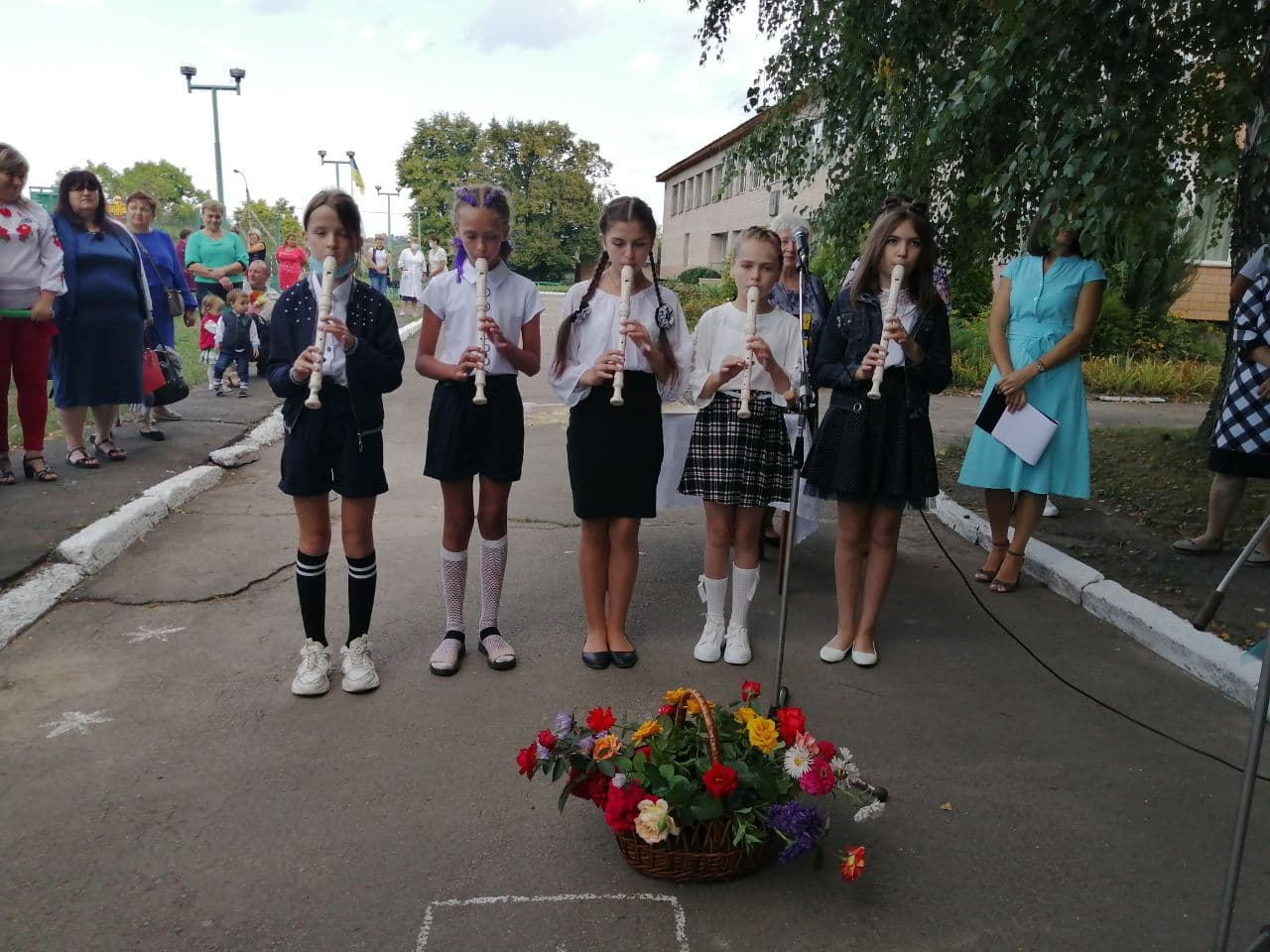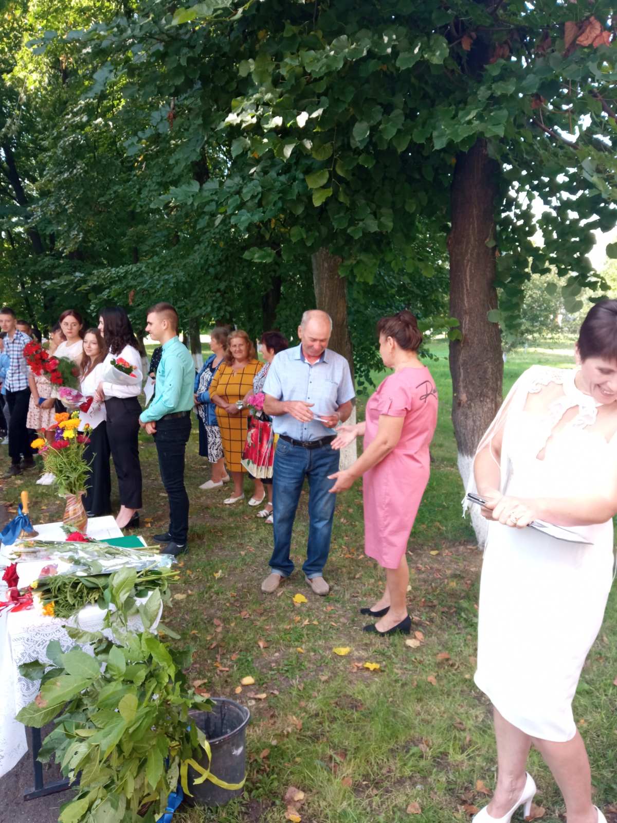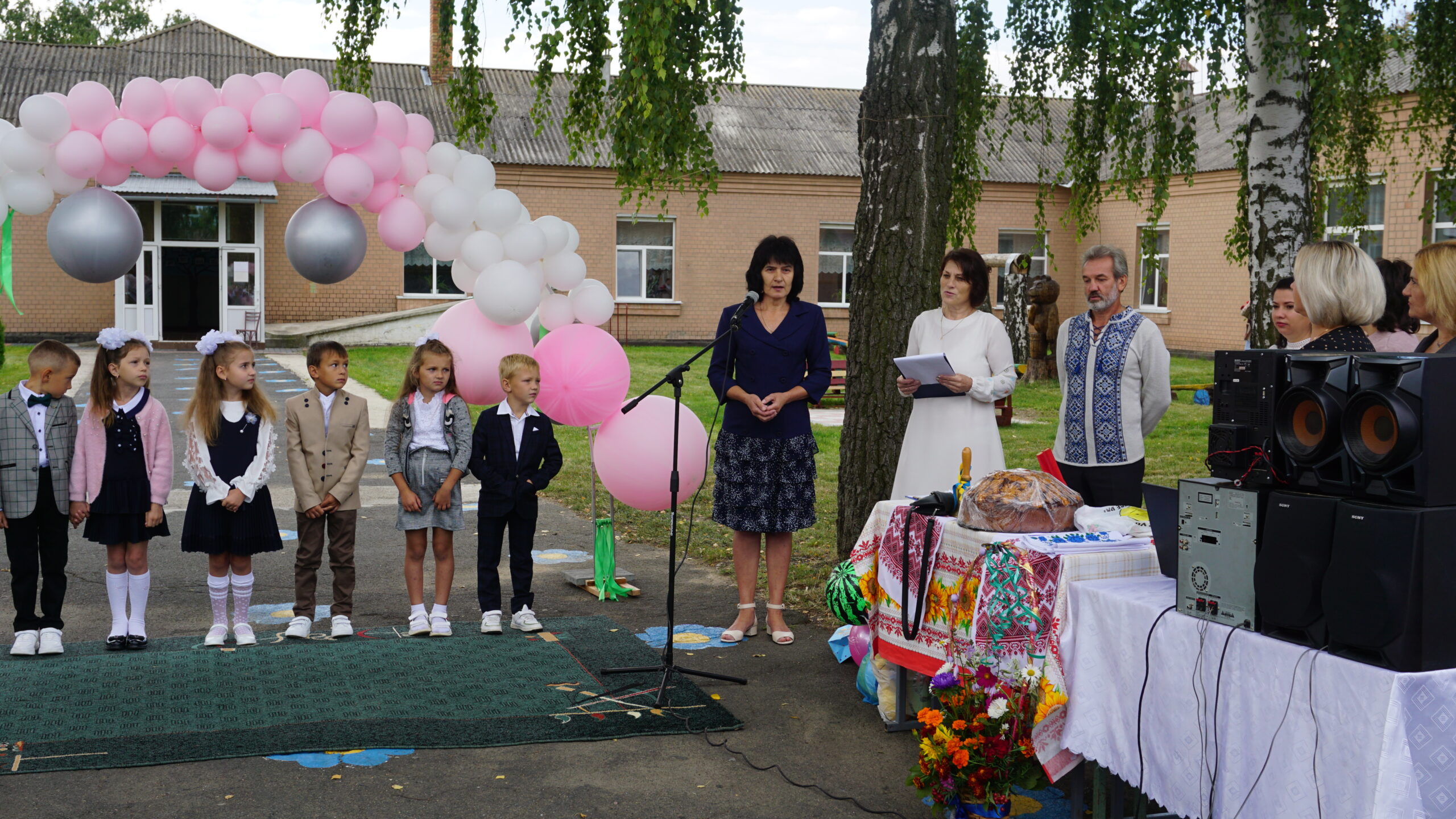 Директор НВК Тетяна Поправка привітала усіх присутніх з Днем знань, звернулася до учнів: «Приємно, що цього року наша шкільна родина поповнилася, а відмінників стало вдвічі більше – аж 10. Хочу побажати учням творчих злетів, нових знань, старання. Батькам та вчителям – здоров’я і терпіння». Подякувала й тим, хто завжди поруч та підтримує навчальний заклад: Володимиру Мовчану та його дружині Лілії Петрівні, Ігорю та Анні Новицьким.