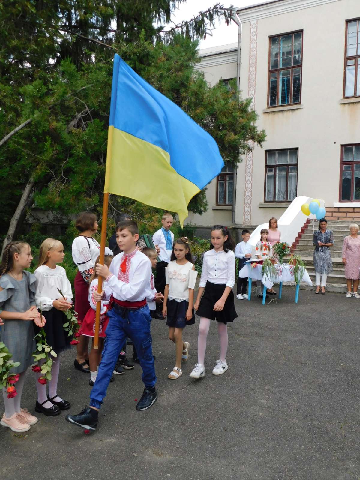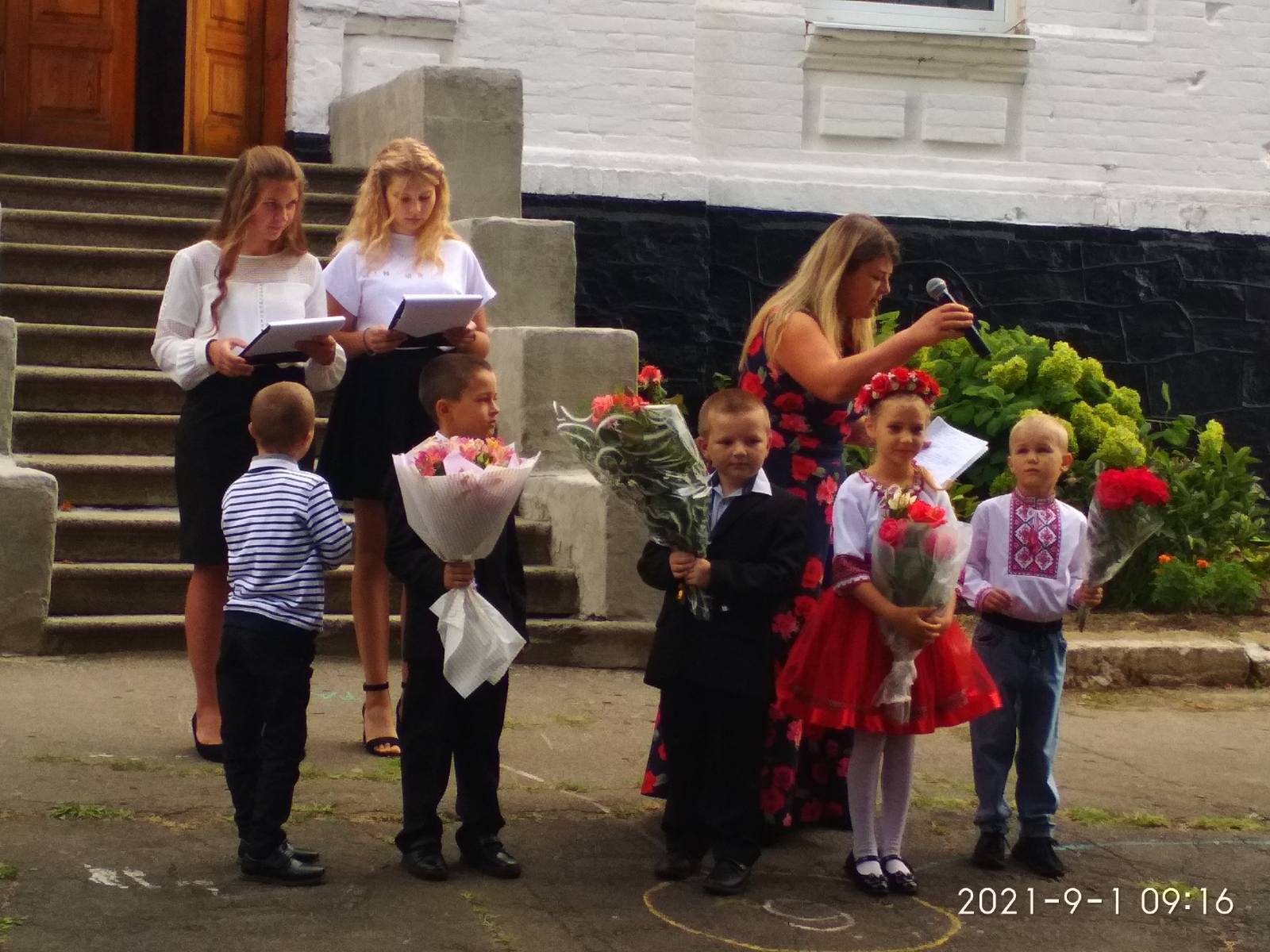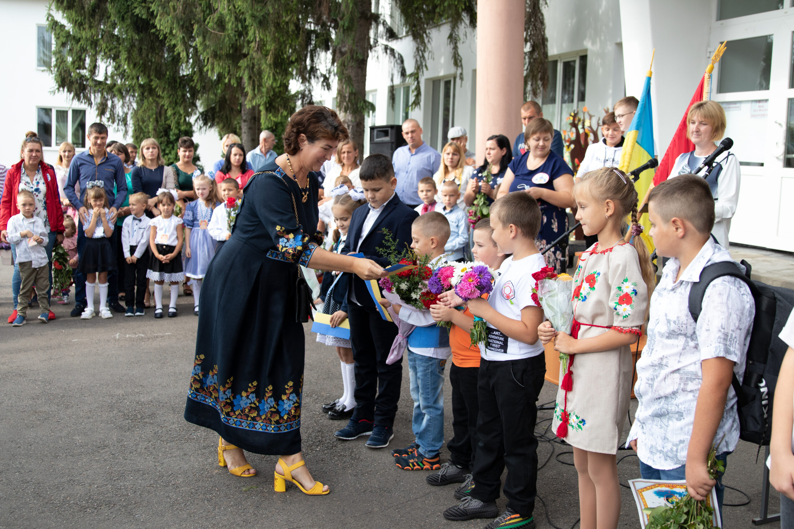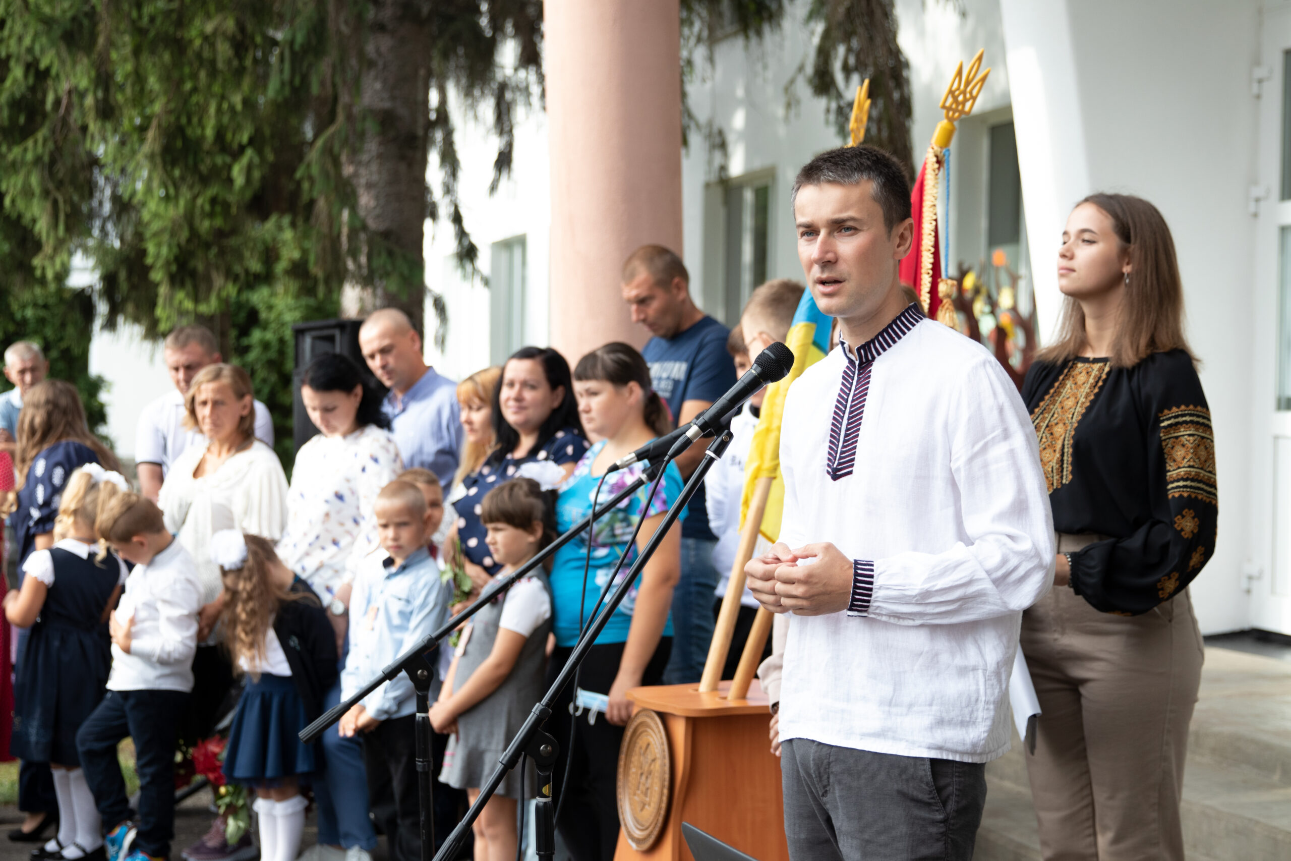 – Дорогі діти, шановні батьки, вчителі, гості! День знань – особливе свято, яке знову зібрало нас у шкільній родині. Особливе воно і для наших першокласників, які вперше сьогодні переступлять поріг навчального закладу. Дорогі першокласники, не зупиняйтеся по дорозі до знань, адже вона нескінченна і цікава. Любі одинадцятикласники, сьогодні ви вже на фінішній прямій. Пам’ятайте, протягом цього навчального року працюйте плідно та старанно. Все у вас вийде! Ми якісно підготували наш навчальний заклад до початку навчального року. Дякую і вчителям, і батькам, і шкільному персоналу. Зі святом вас. На святковій лінійці за традицією батьки завели до школи першокласників. Їх цього року 10.