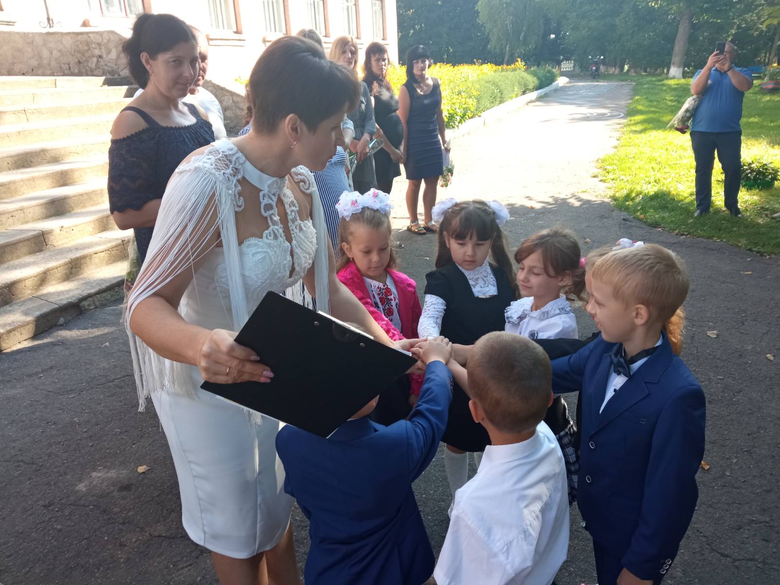 Після таких несмілих і навіть трохи шепелявих «першачків», які розказували віршики зі своєю вихователькою дитячого садка, слово тримали 11-класники. Вони дякували рідній школі та вчителям за те, що виплекали їх такими: зовсім недавно вони так само з трепетом розказували віршики і йшли на свій перший урок. У небо вони сьогодні запускали повітряну кулю – символ мрій та бажань.