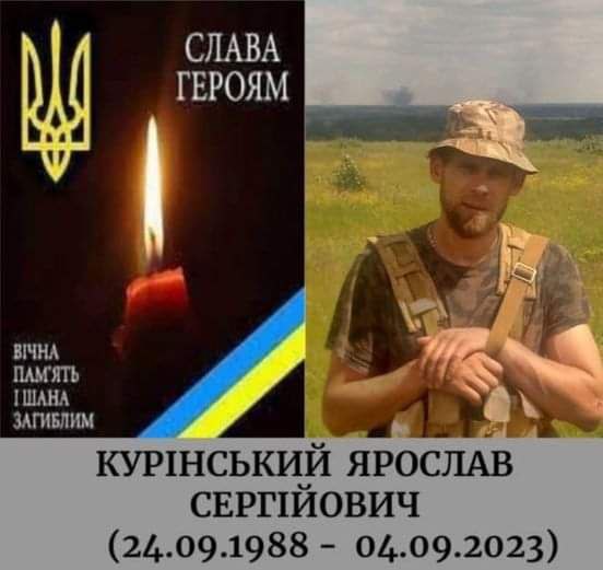 А Ярослав Курінський уже на зустріч випускників ніколи не прийде. У наших серцях він залишиться Героєм України, який загинув у смертельному бою з російською агресією за свободу, незалежність та територіальну цілісність України. Йому було 34 роки, 20 днів не дожив до свого 35-річчя. Не дожив, недолюбив, недокохав, недоплекав, недовиховував, недомріяв, недовтілив у життя. Волелюбний, веселий, жартівливий, дружній, працьовитий, опора і надія мамі Людмилі Вікторівні, дружині Анні, синочку Захарчику. Осиротіла для них земля. Чорне горе ввірвалося в їх життя і життя близьких і знайомих Ярослава. Він завжди вірив, що все буде добре і цю віру вселяв у серця рідних. Він 4 роки воював на Сході України в АТО, а з перших днів війни під час повномасштабного вторгнення росії 2022 року пішов захищати Україну. І дійсно, я вірю, що такі оптимісти, повернулися б додому, якби не куля снайпера. За ним слідкували, його свідомо знищили. Але світлий образ Ярослава назавжди залишиться в наших серцях і пам’яті народній.
