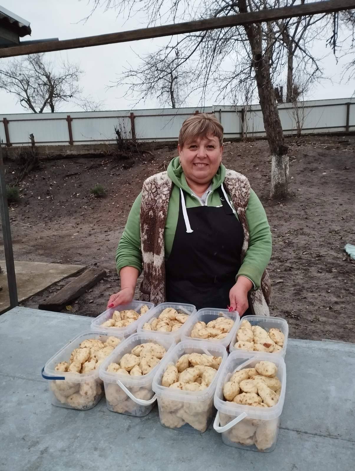 Щодня готує нові партії смаколиків – щоб кожний пакунок, який відкриє боєць у холодному окопі, був нагадуванням: про них пам’ятають, за них переживають, їх чекають удома.