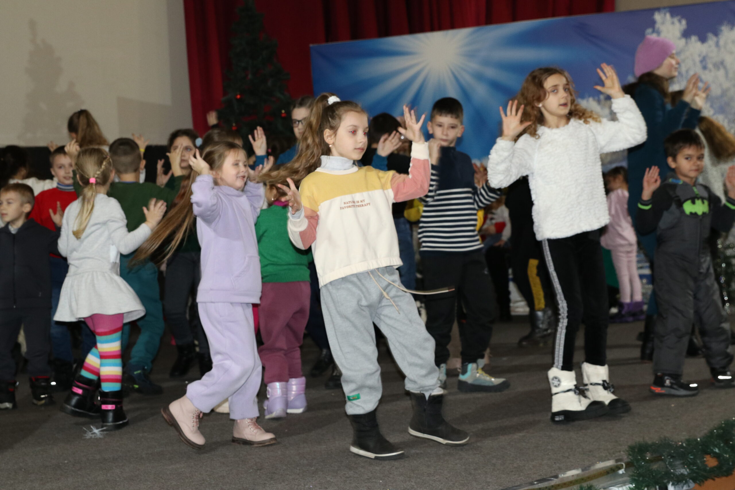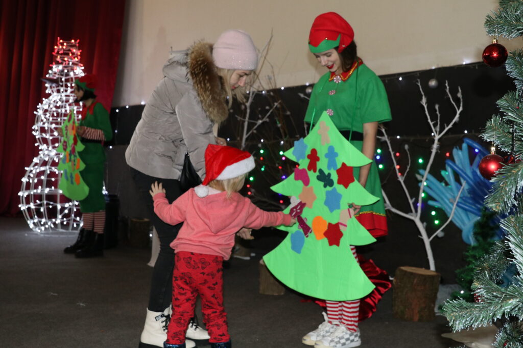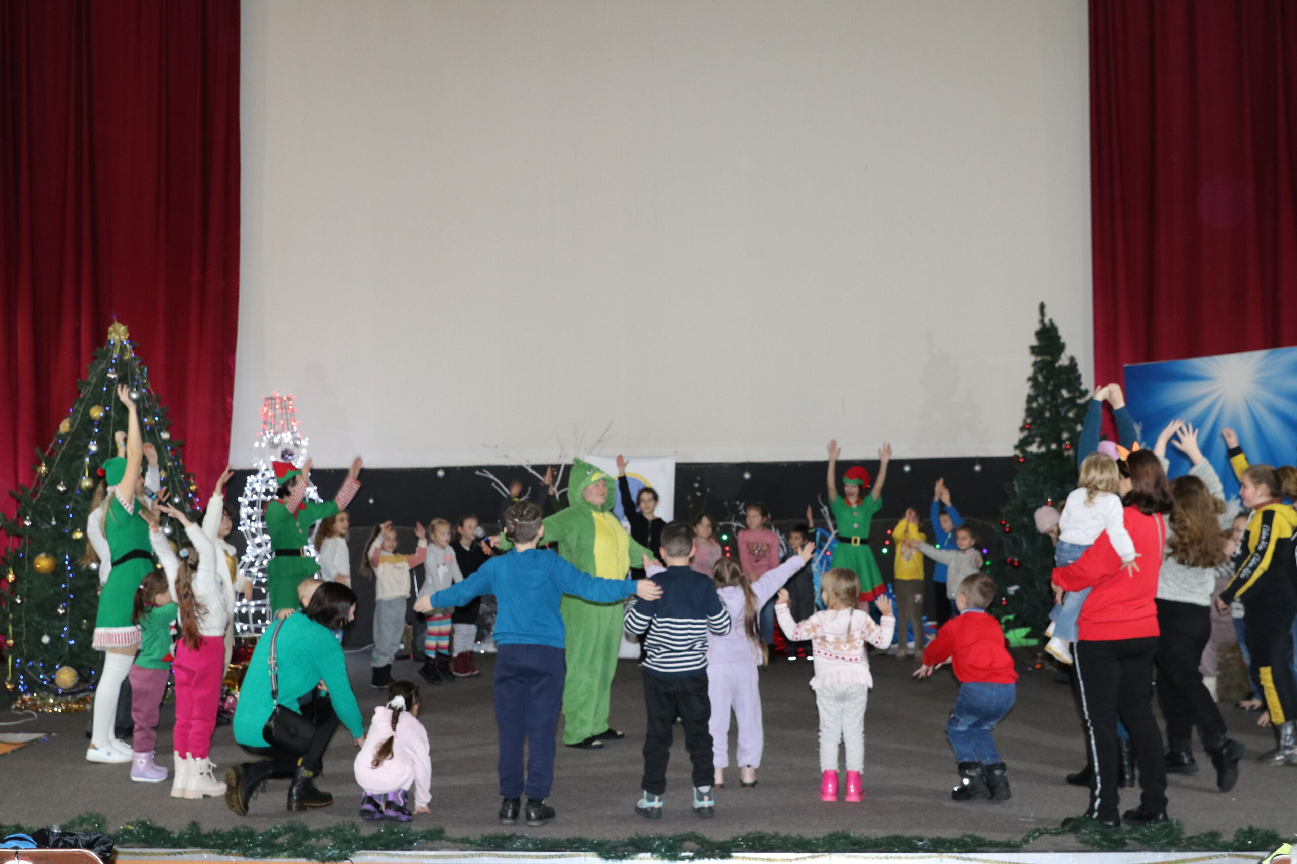 Запрошені аніматори влаштували динамічні веселощі з танцями, конкурсами та інтерактивами. Ведучими заходу були Дракон, який є символом прийдешнього року та Ельфи. Разом із малечею вони завзято танцювали під новорічні пісні, поділившись на команди, прикрашали ялинки і ловили сніжинки. Також грали в гру «Спіймай Дракона» та веселились із крижинками-повітряними кульками, з яких потім аніматори зробили кожній дитині різні фігурки. А ще влаштували справжній танцювальний флешмоб.