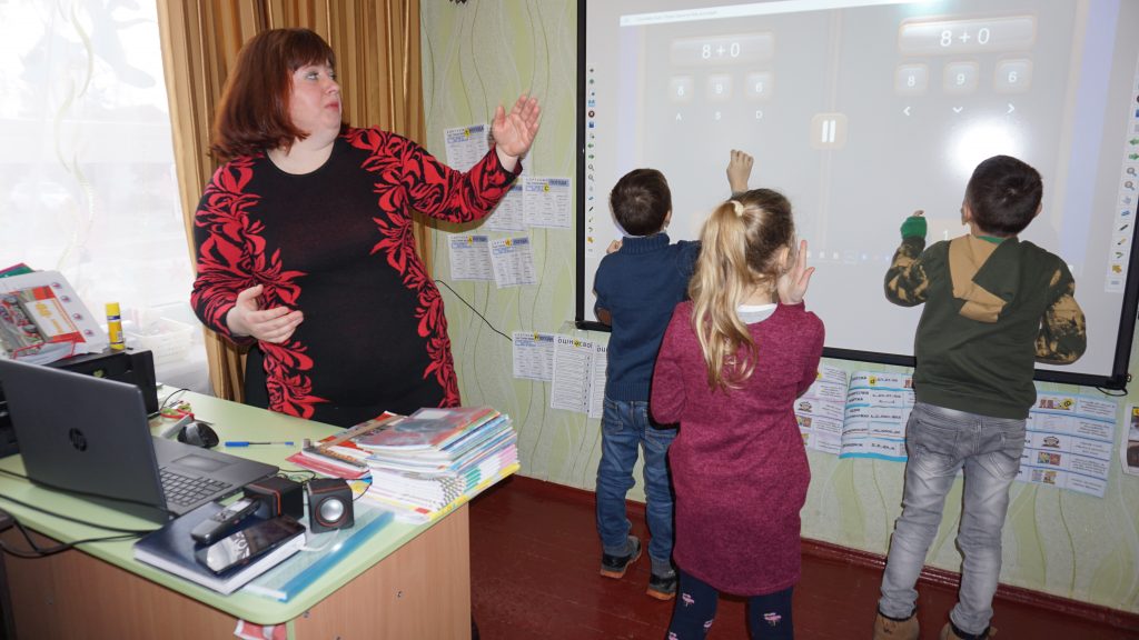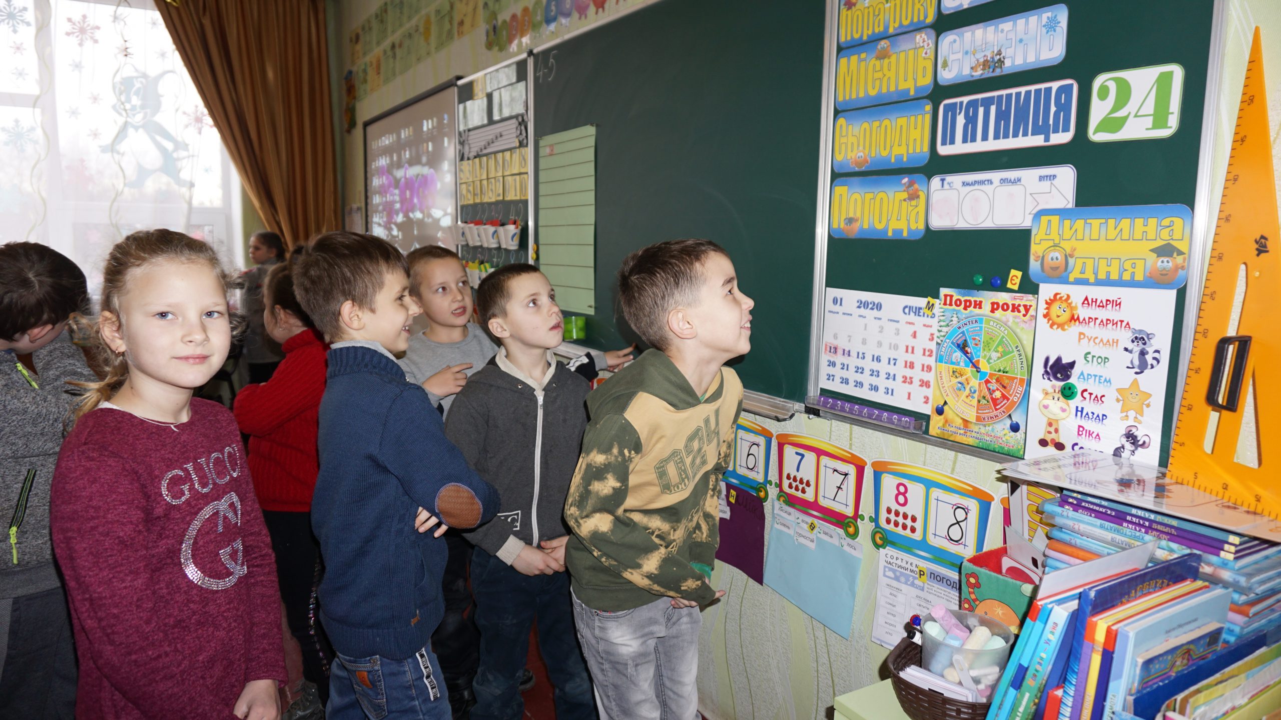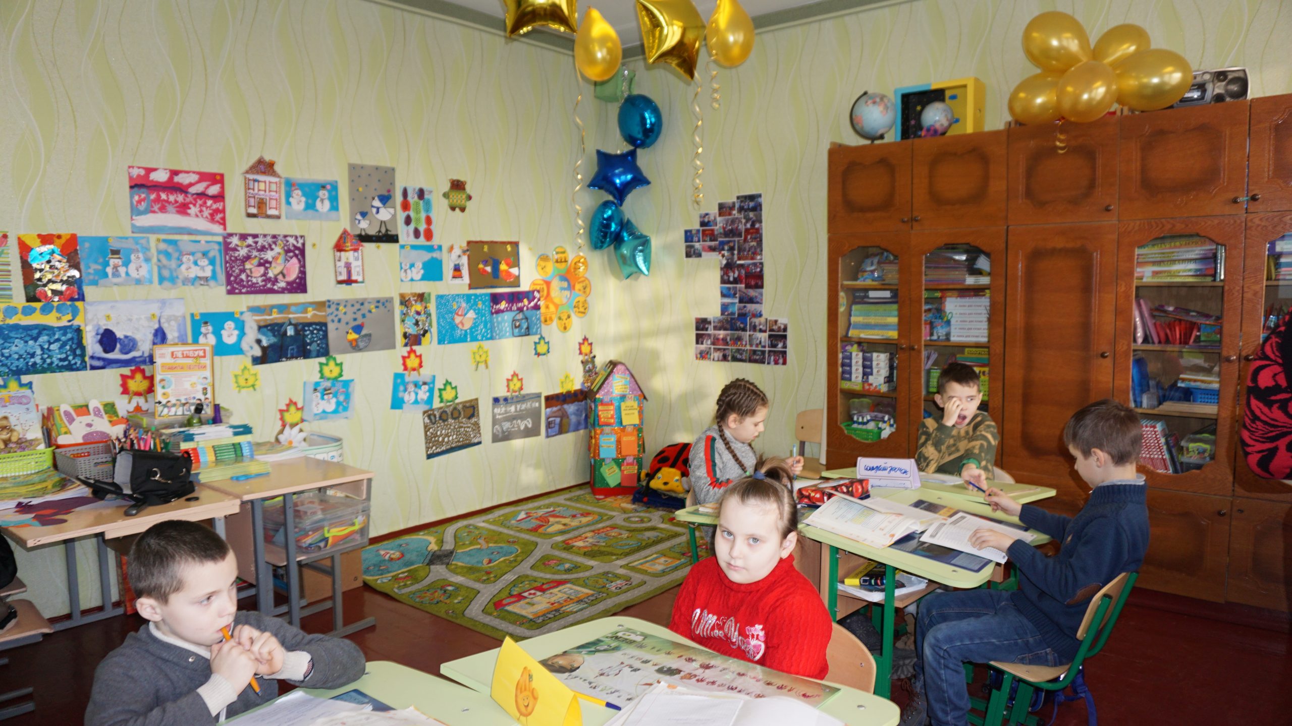Ми завітали до школи поспілкуватися з Іриною Сергіївною. Зараз вона навчає дев’ятеро 2-класників. Їх ми застали на перерві. Вони щось виконували, активно обговорюючи за партами, розставленими так, щоб діти бачили один одного. Класна кімната здалася невеличкою творчою лабораторією з безліччю плакатів, стендів, карт, причому рухомих, змінних. Тут використовують інтерактивну дошку і навушники, різноманітну цікаву наочність та проектор, ЛЕГО-конструктор – все для того, щоб зробити навчальний процес цікавим, не обтяжуючим. Тут дитина почуває себе вільно й розкуто. У класі стільки дитячих робіт: їх можна побачити не лише на стіні творчості, а всюди. Є тут і ошатний килимок з м’якими подушечками та блискучим будиночком з фоамірану – так звана зона відпочинку. («Та на відпочинок часу практично не залишається,» – зізнаються діти). Вони вже почали вивчати табличку множення і сьогодні вправлятимуться на тренажері із застосуванням купюр національної валюти.