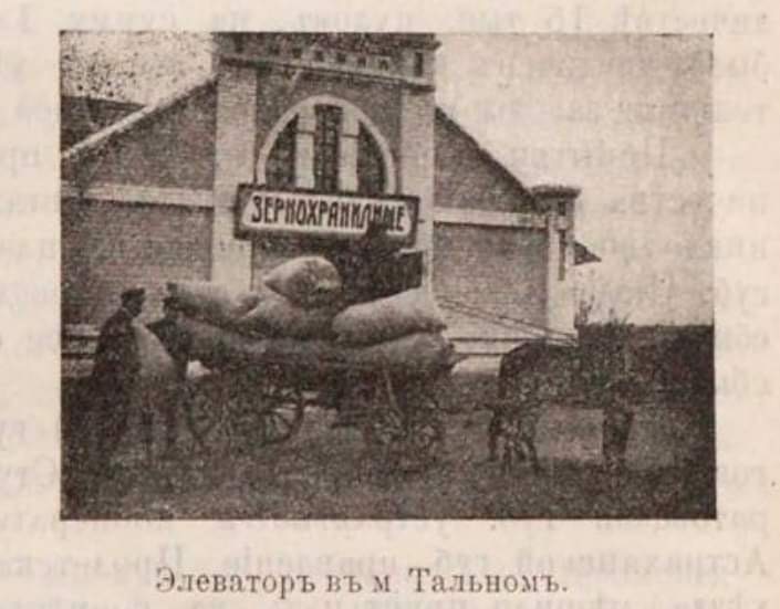 Газета «Кіевлянин» № 42 від 11 лютого 1913 року писала: «Всеми членами (Уманьського) 1-го ссудо-сберегательного товарищества единогласно была признана прибыльность сооруженія элеватора, при чем указывалось на деятельность въ этомъ направленіи тальновского кредитного товарищества, которое, какъ известно читателямъ «Киевлянина», въ 1912 году открыло вполне оборудованный имъ элеваторъ на 200.000 слишкомъ пудовъ зерна, съ мельницей, съ маслобойнымъ отделеніемъ, съ электрическимъ освещеніемъ».