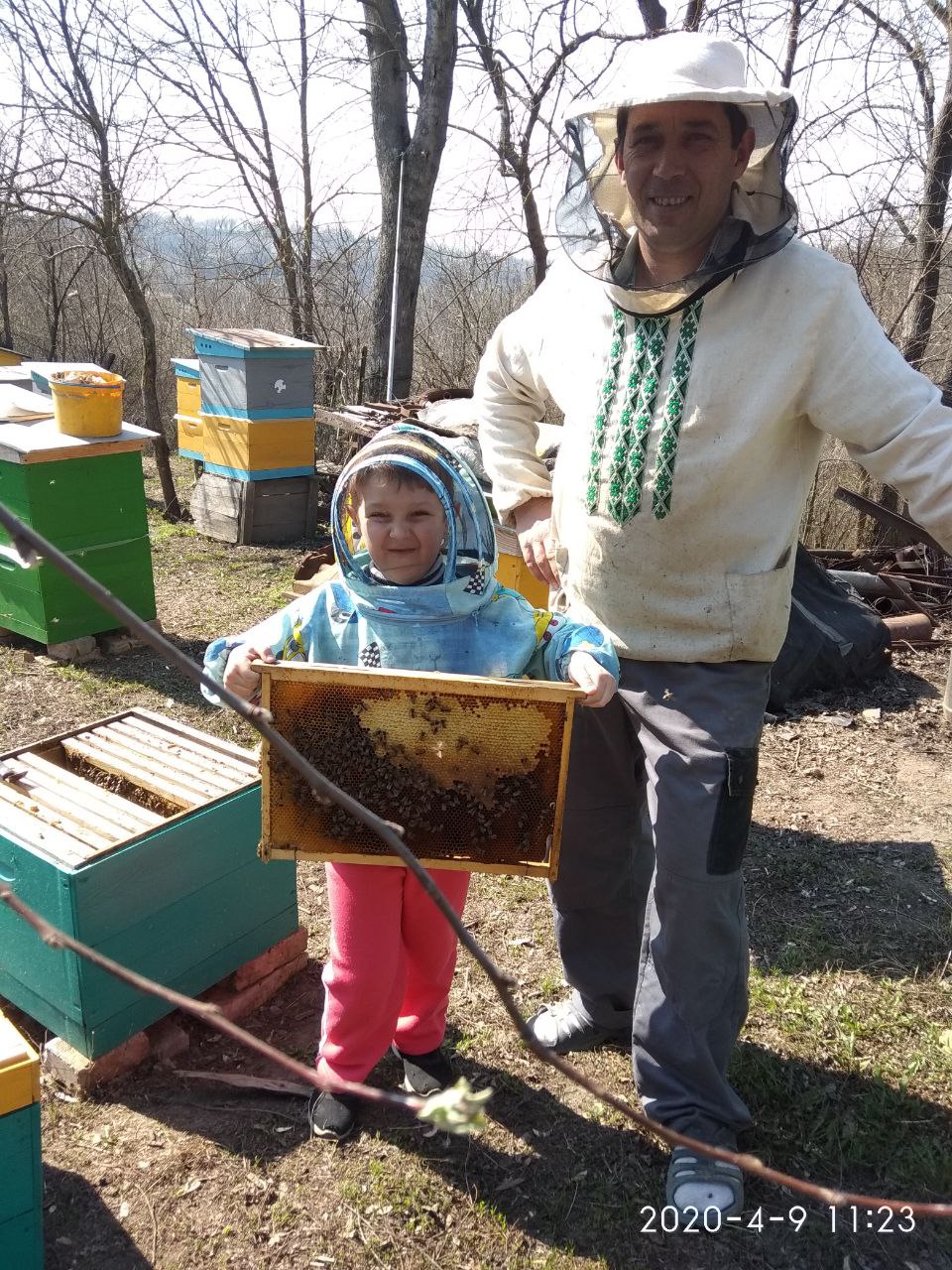 – Пасіка в нас доволі сучасна. Все практично та механізовано. Маємо новітню українську техніку для збору меду, медогонку яка виготовлялась у прифронтовому місті Дергачі на Харківщині. Найголовніше в нас класний колектив із п’яти осіб, тому помічників вистачає. Кожен відповідає за свій процес. До прикладу старша донечка Юля розпечатує рамки. Молодша – Катя завантажує в медогонку. Я або дружина цідить мед, а наймолодший – Степан лиш наглядає за відром, щоб не розлився продукт, – із захопленням розповідає Олександр Михайлович.