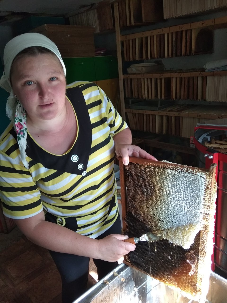 Оскільки це вже сімейна справа то працюють і допомагають усі. Коли викачують мед у спеціальному приміщенні «зароджується» ніби маленький вулик, бо всі «дзижчать», працюють.