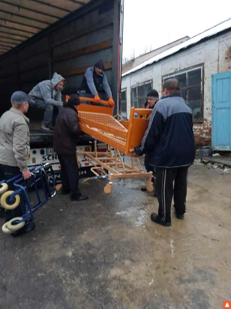 Нещодавно вантаж доставлено в Тальне. А це засоби реабілітації: 39 багатофункціональних ліжок, 43 ортопедичні матраци, 13 приліжкових тумбочок, 21 інвалідний візок, 55 «ходунків» і 10 туалетних стільців.